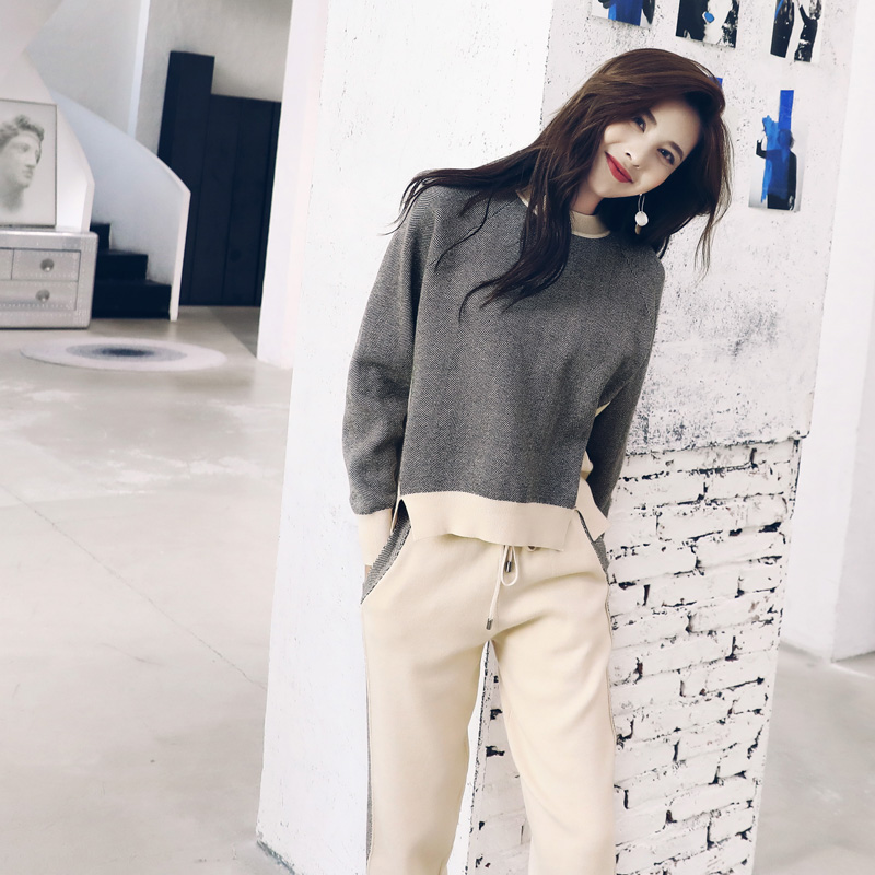 / 秋裝針織衫套裝褲女2018新款韓版時尚休閑寬松顯瘦毛衣時髦兩件套