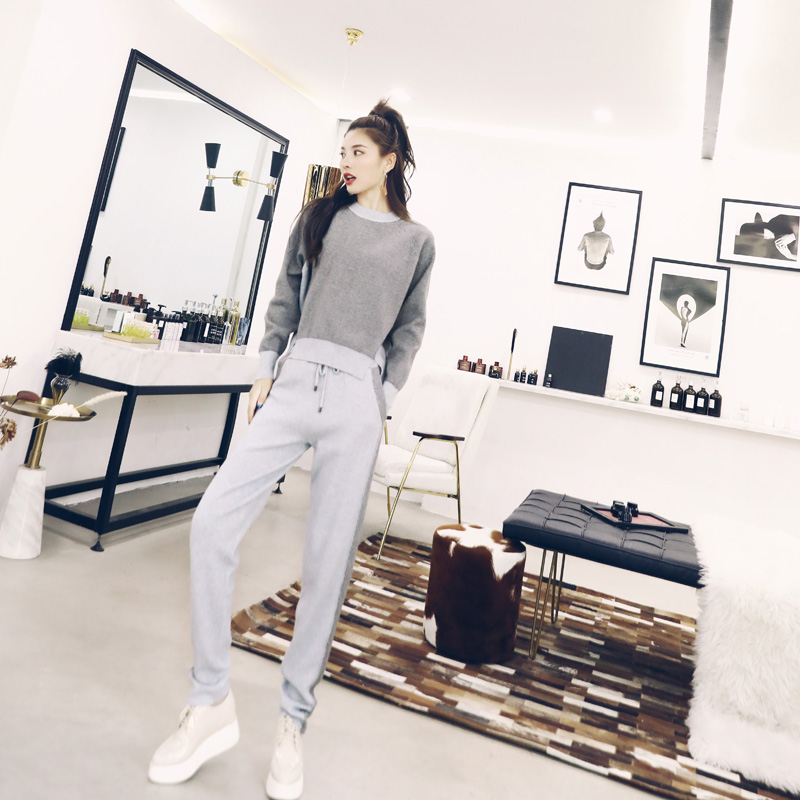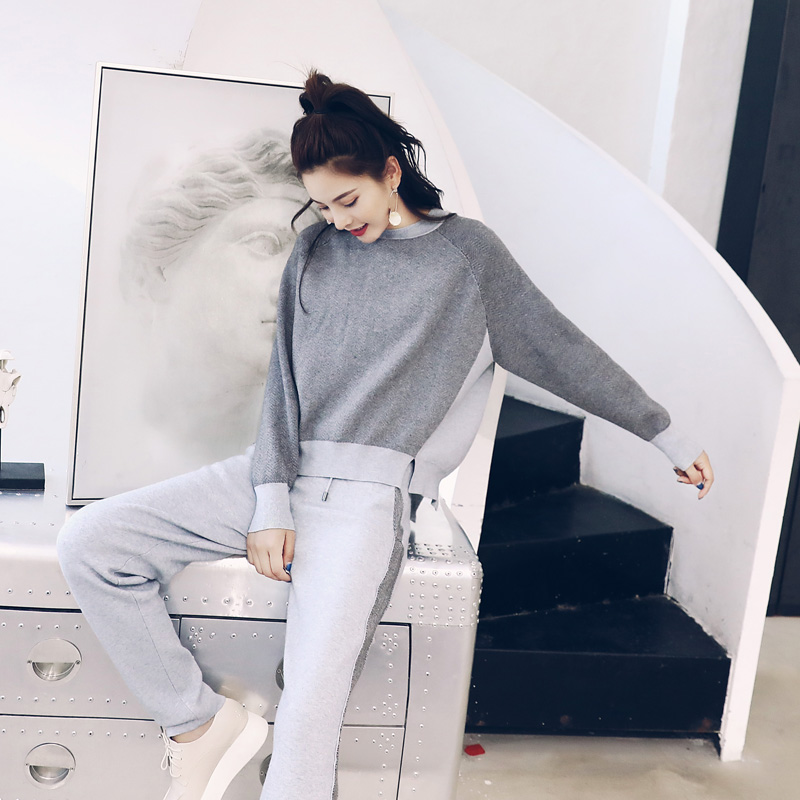 秋裝針織衫套裝褲女2018新款韓版時尚休閑寬松顯瘦毛衣時髦兩件套