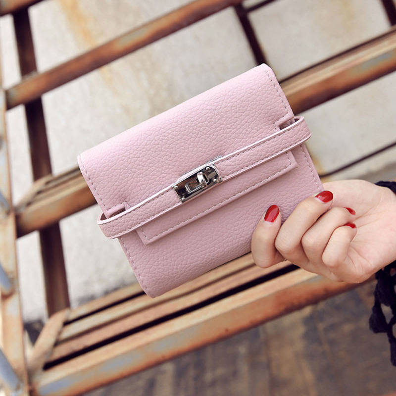 新款韓版復古安迪同款荔枝紋鎖扣女士短款錢包錢夾卡包潮手包