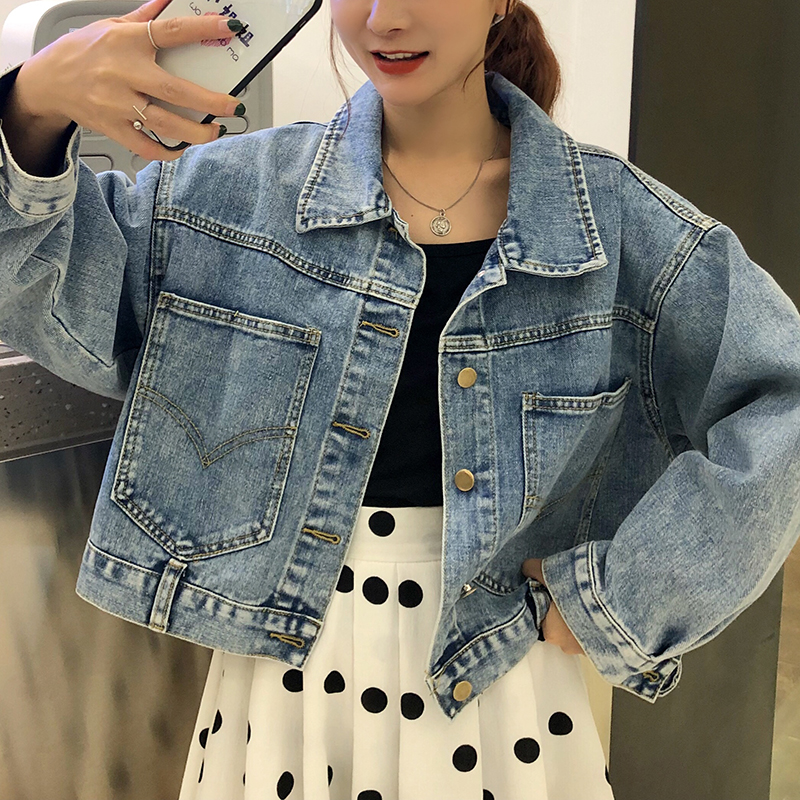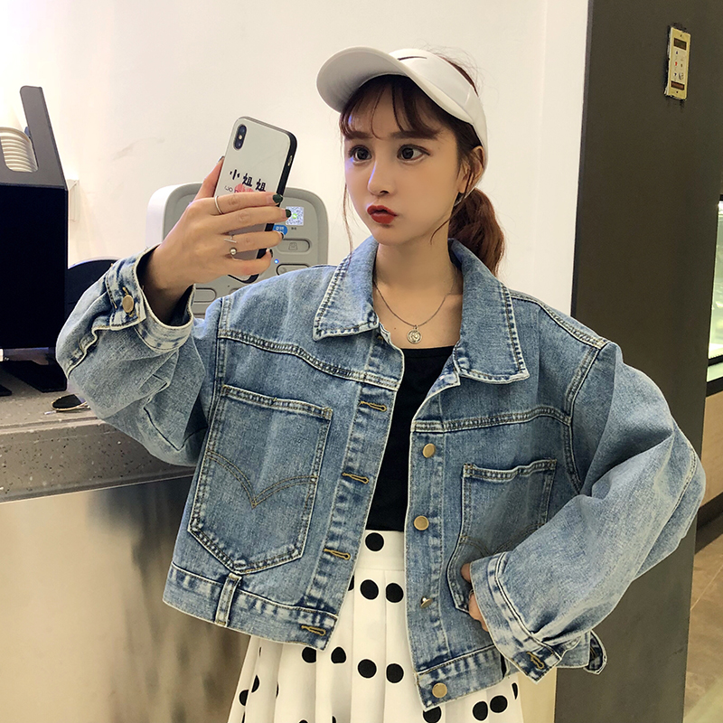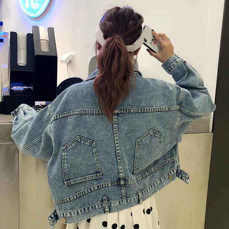 帥氣牛仔短外套秋裝女2018新款復古港風學生蝙蝠長袖夾克休閑上衣