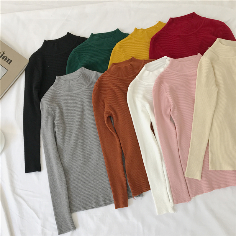 外穿高領打底薄毛衣女秋冬裝2018新款韓版氣質修身顯瘦長袖針織衫