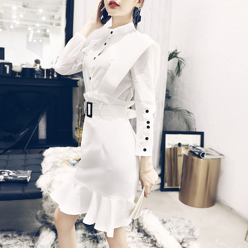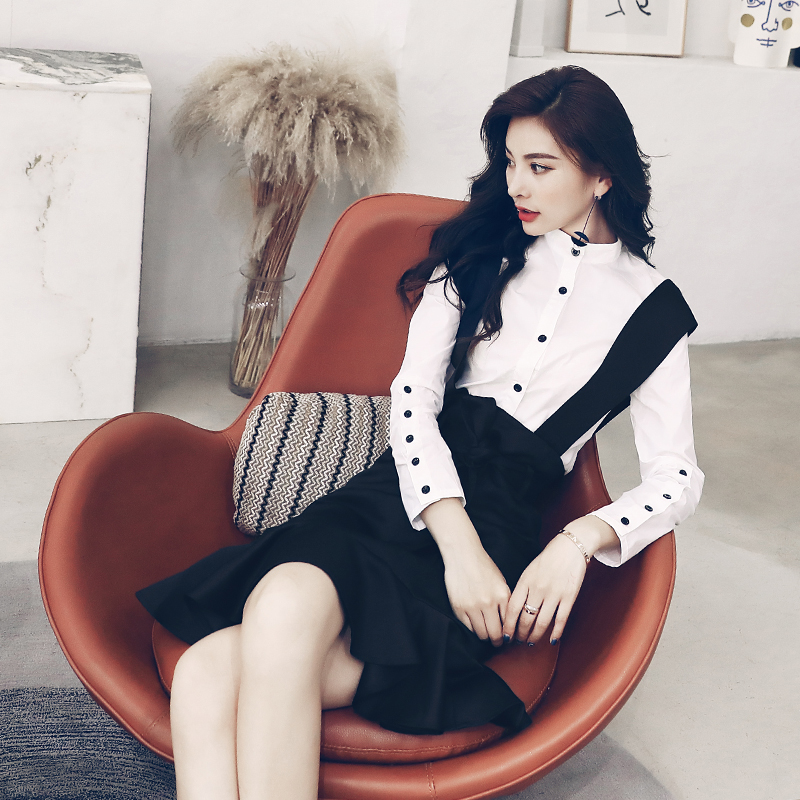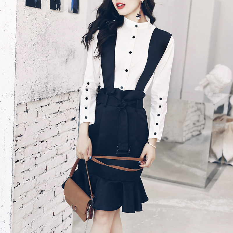 / 2018秋季新款復古港味背帶吊帶裙套裝襯衫加連衣裙名媛兩件套裙潮