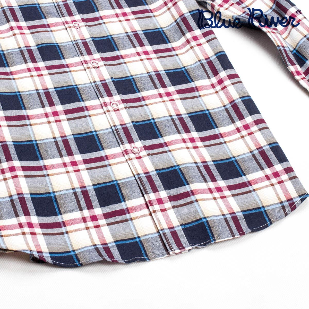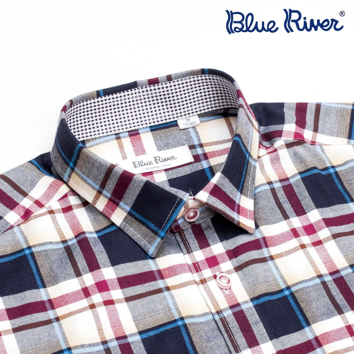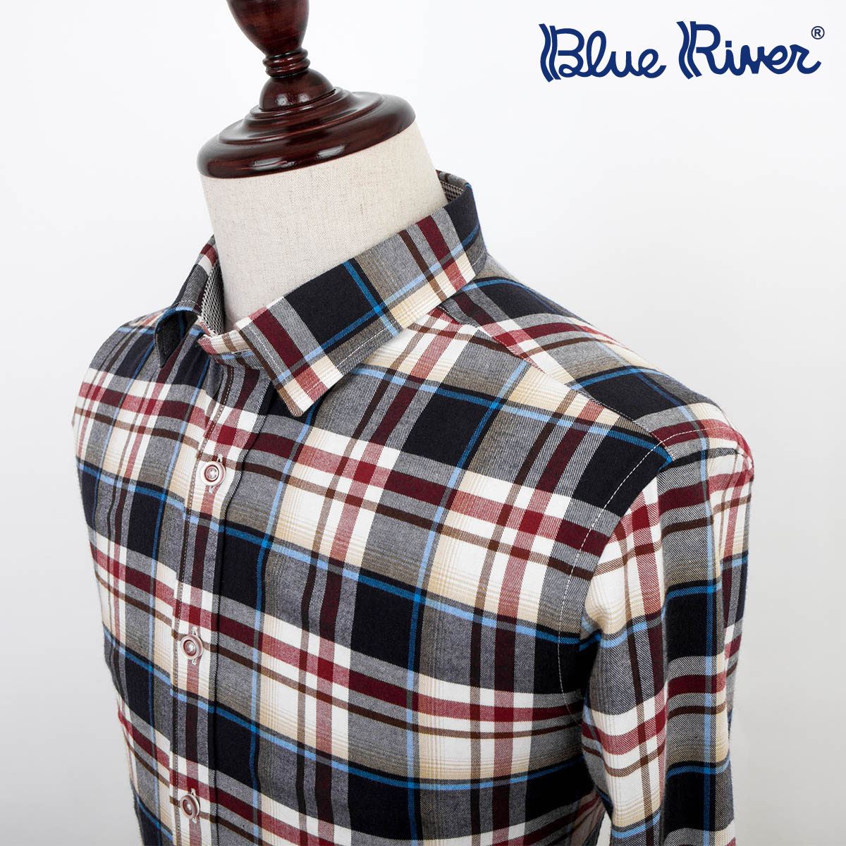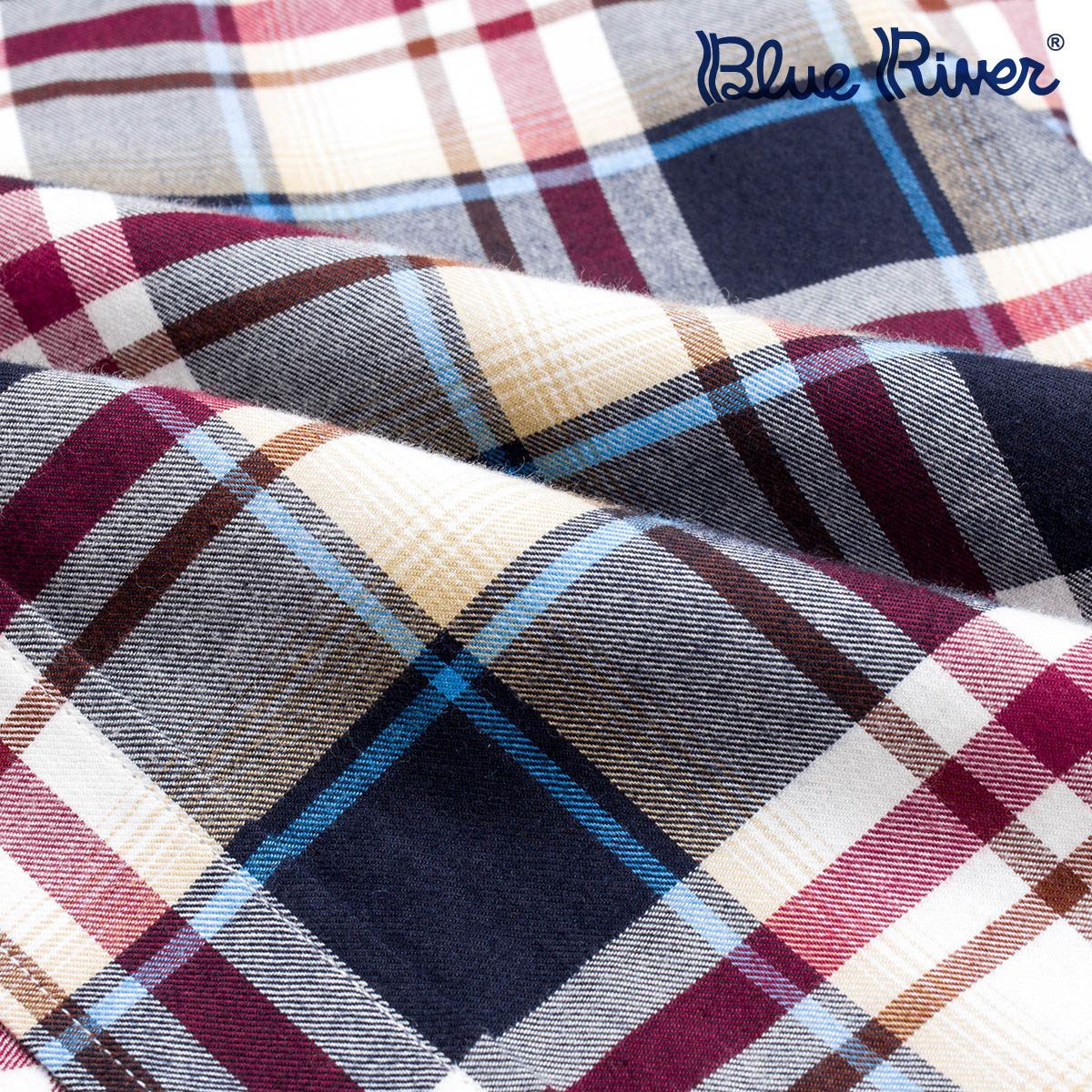 藍河男裝 蠶絲棉休閑彩色大格子保暖長袖男式襯衫秋款襯衣