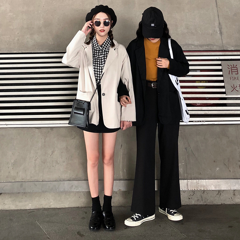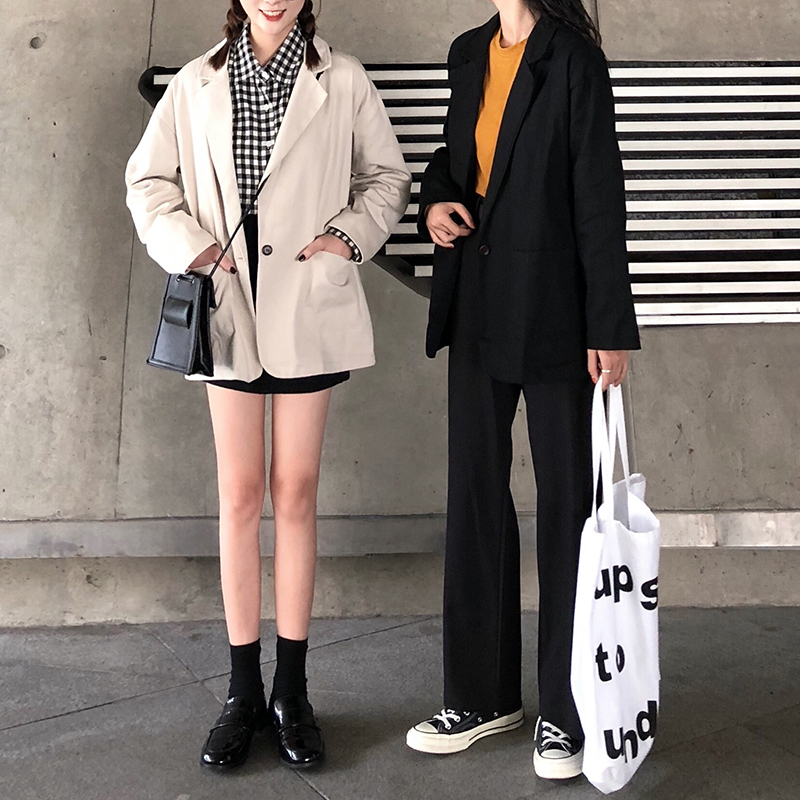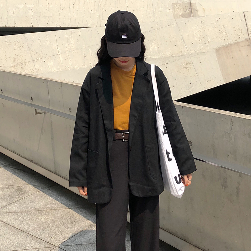 / 秋冬女裝2018新款韓版chic寬松百搭中長款翻領口袋長袖西裝外套潮