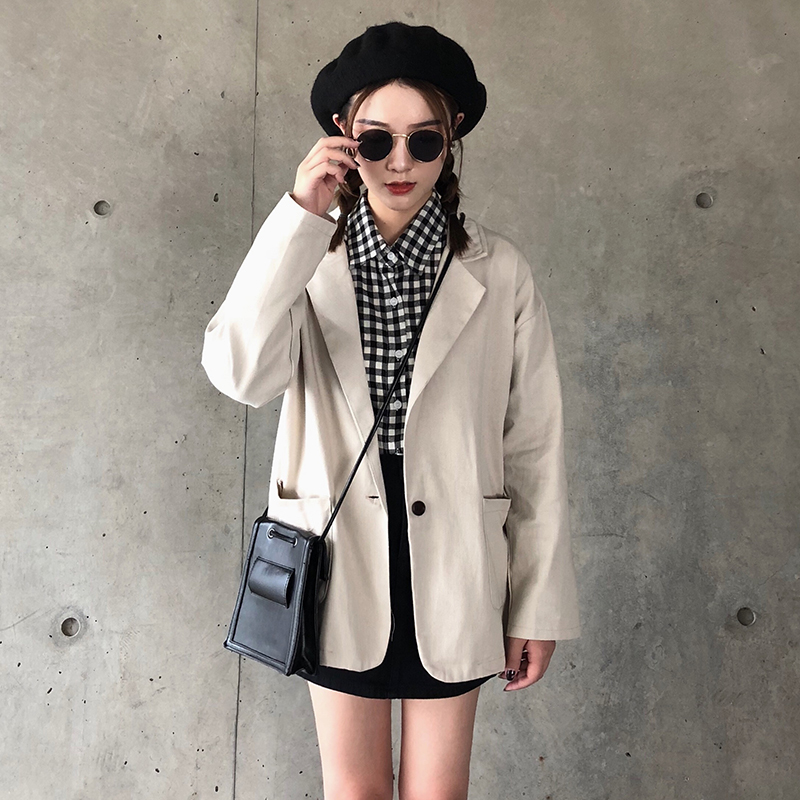 秋冬女裝2018新款韓版chic寬松百搭中長款翻領口袋長袖西裝外套潮