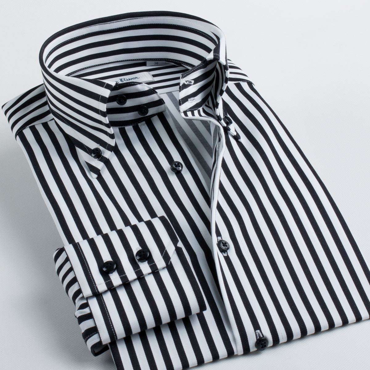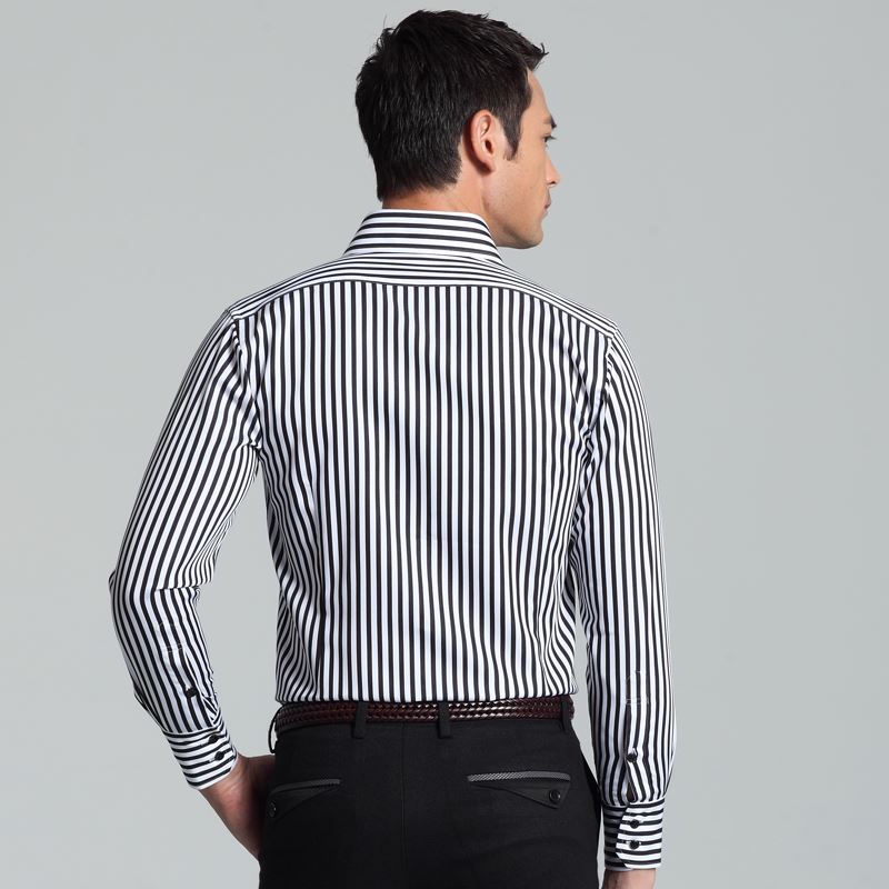 / 藍河豎條紋襯衫男長袖修身韓版秋裝純棉商務休閑男士修身襯衣男裝