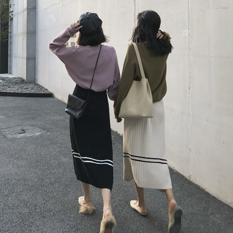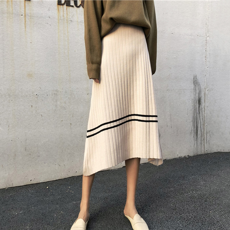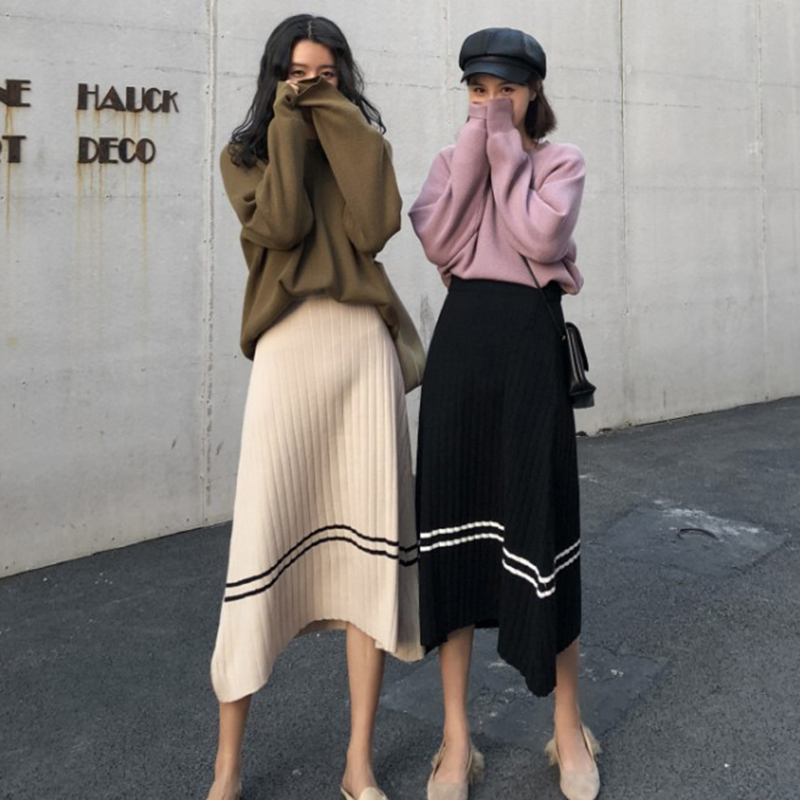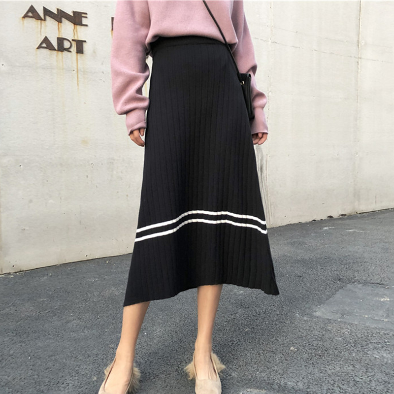 秋季女裝2018新款韓版chic針織半身裙高腰中長裙學生拼色a字裙子