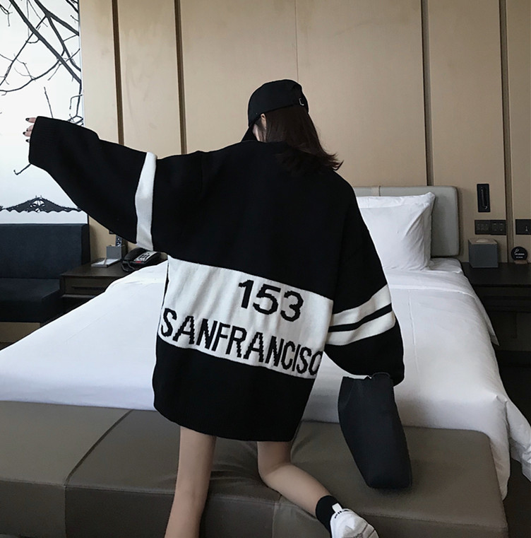 / 小清新時尚新款韓版秋冬百搭復古chic上衣中長款長袖字母寬松毛衣