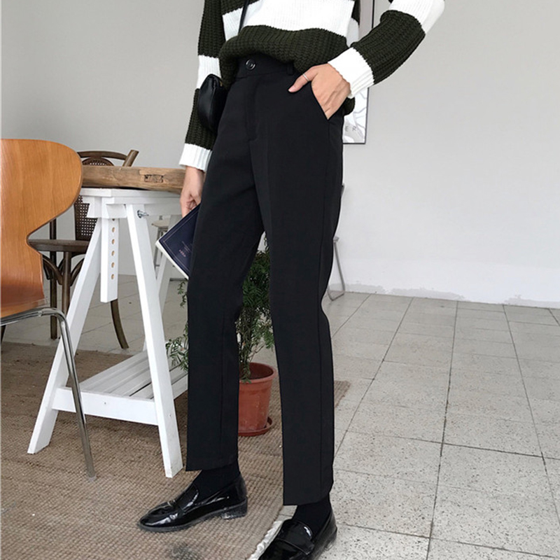 / 復古黑色西裝褲女秋裝2018新款港味氣質高腰直筒褲時尚休閑長褲子