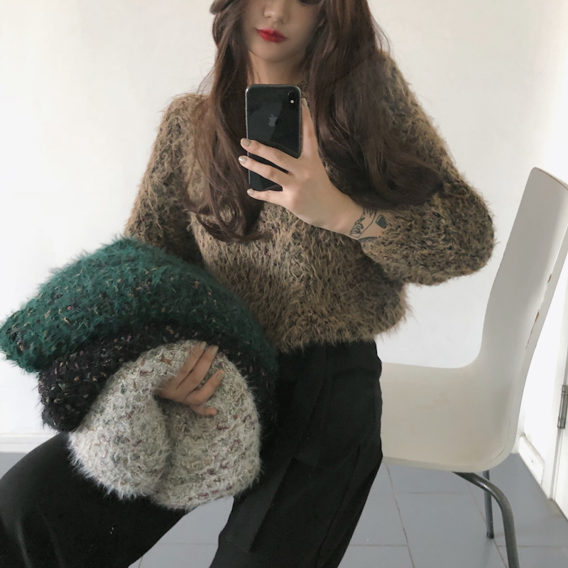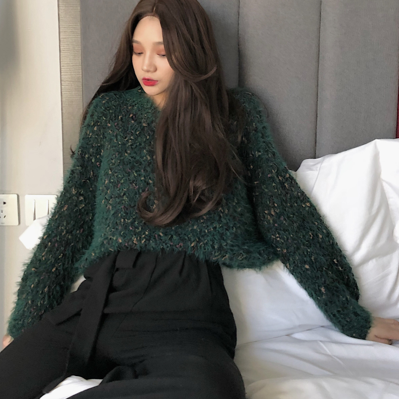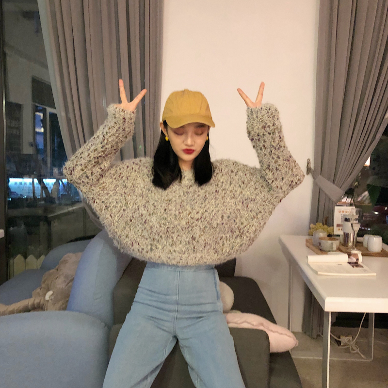 秋冬新款韓版復古女裝港味粗線寬松短款百搭上衣加厚彩虹點毛衣潮