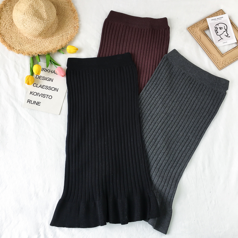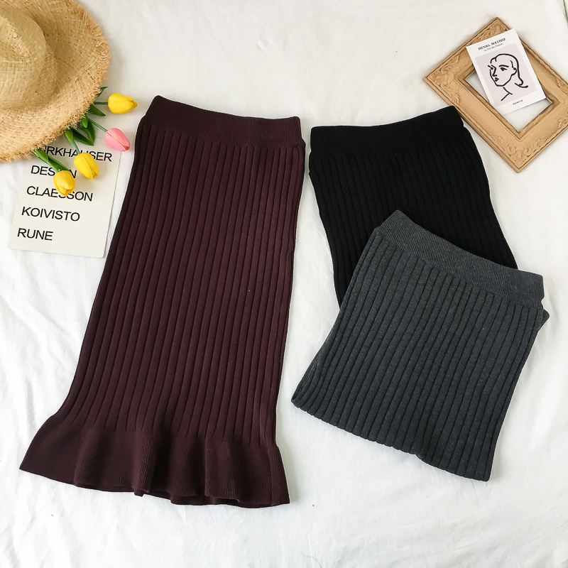/ 高腰顯瘦針織魚尾半身裙子女秋冬裝新款韓版學生復古風黑色中長裙