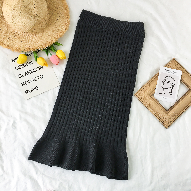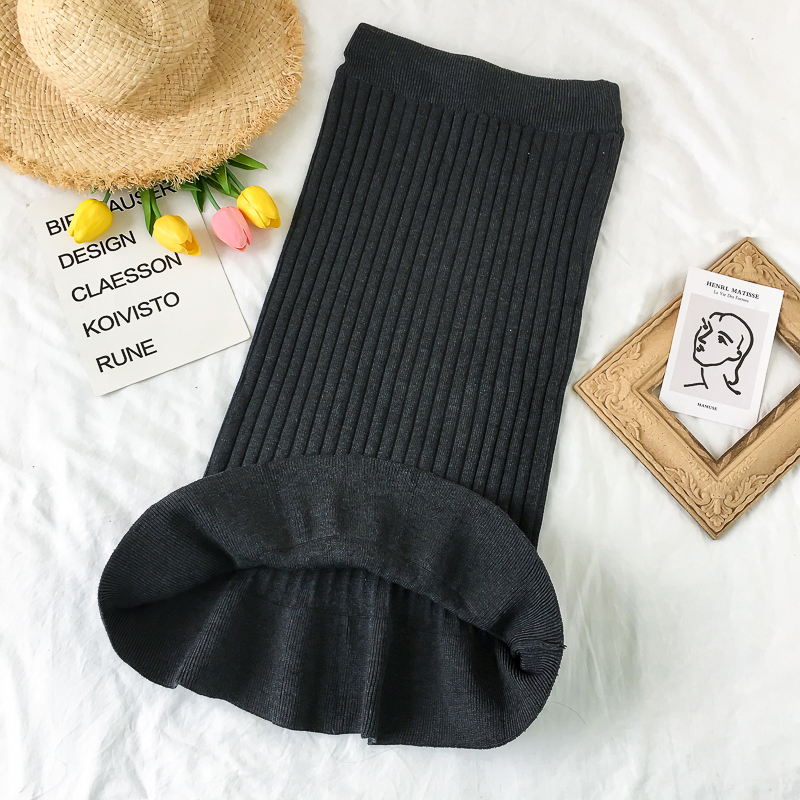 高腰顯瘦針織魚尾半身裙子女秋冬裝新款韓版學生復古風黑色中長裙