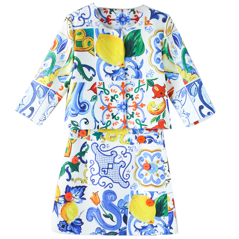 / 秋裝女2018新款印花七分袖外套半身裙短裙兩件小個子仙女裙子套裝