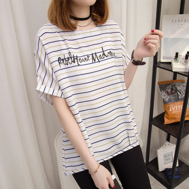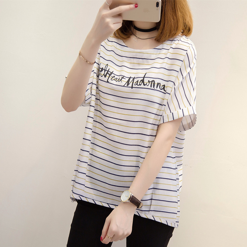 夏裝新款女條紋t恤女寬松小清新上衣體恤衫短袖韓版衣服女夏
