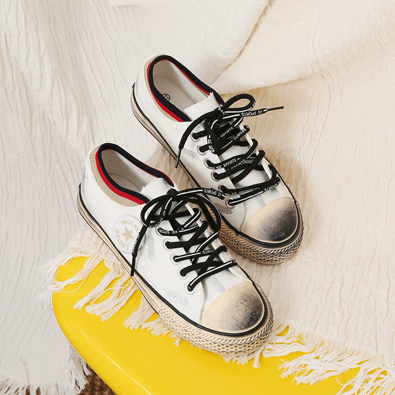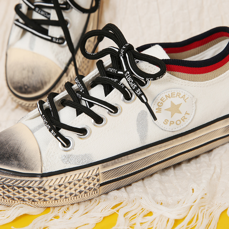 MG小象低幫帆布鞋女新款涂鴉噴墨復古小臟鞋學生秋季ulzzang鞋子