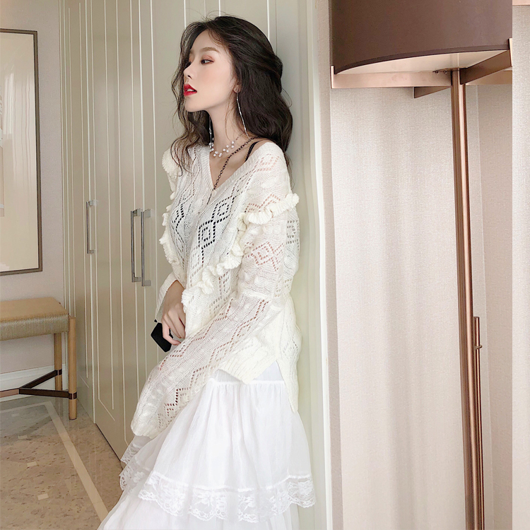 白色毛衣|藍色毛衣|蕾絲蛋糕裙