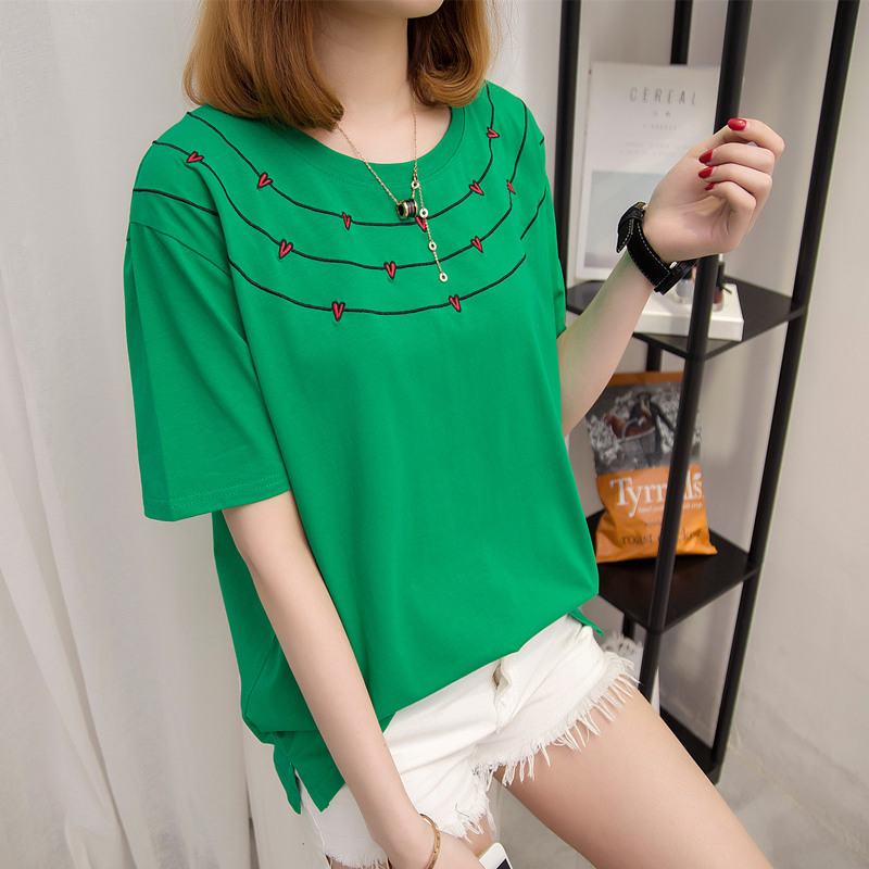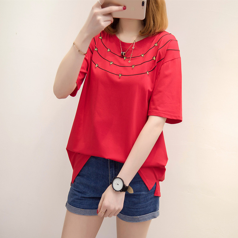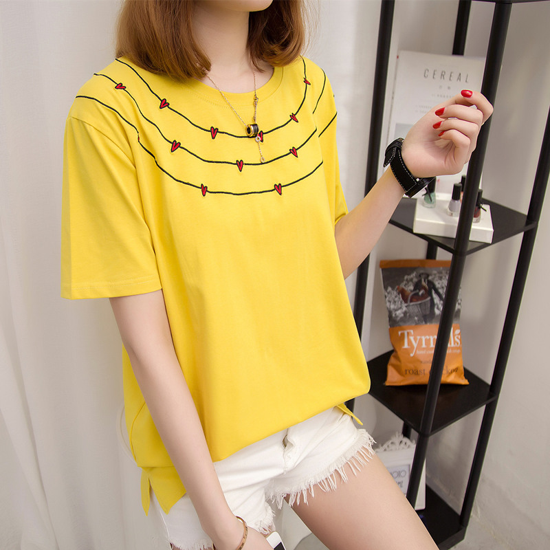 女裝夏裝新款潮白色t恤女短袖寬松條紋上衣韓版學生百搭體恤