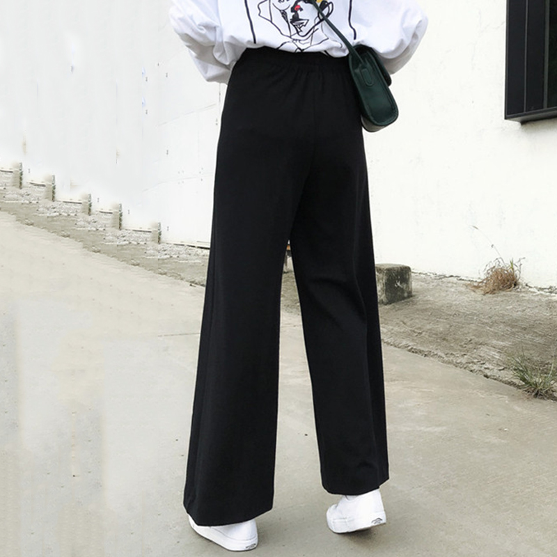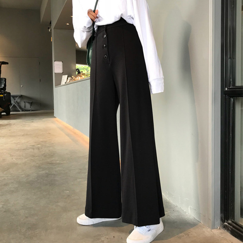 褲子女秋季2018新款寬松高腰墜感闊腿褲學生排扣黑色休閑長褲女裝