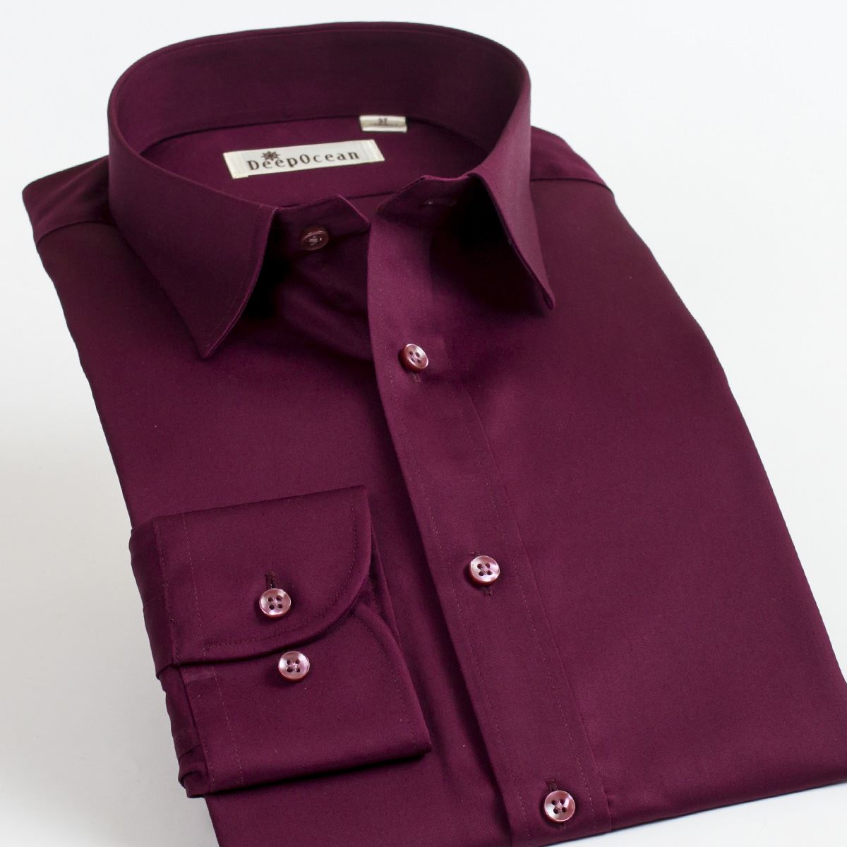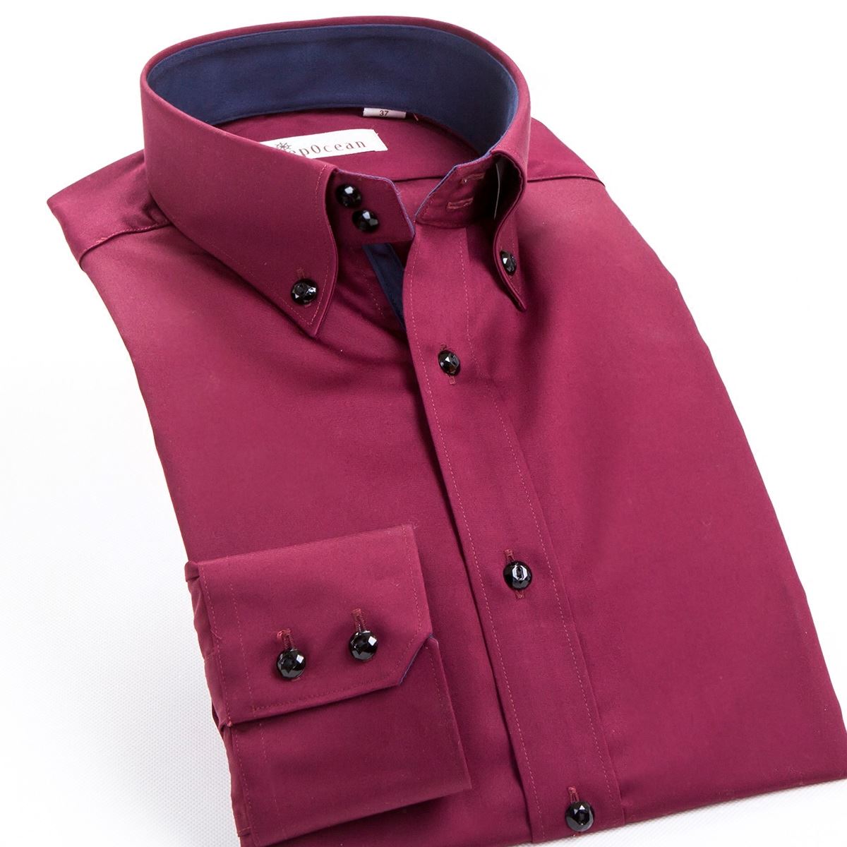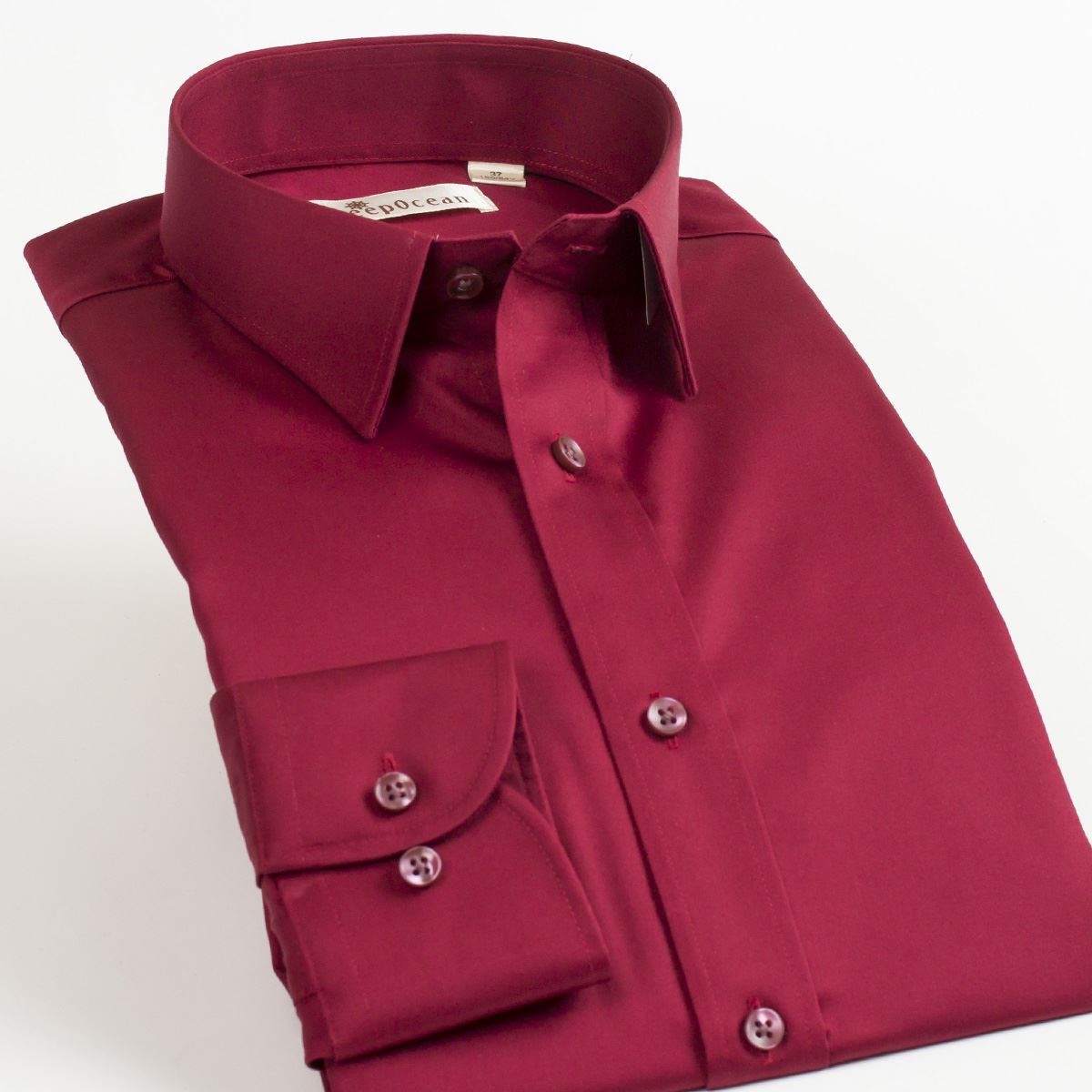 / 新郎紅襯衫長袖男結婚韓版本命年純色絲光棉婚禮修身酒紅色襯衣