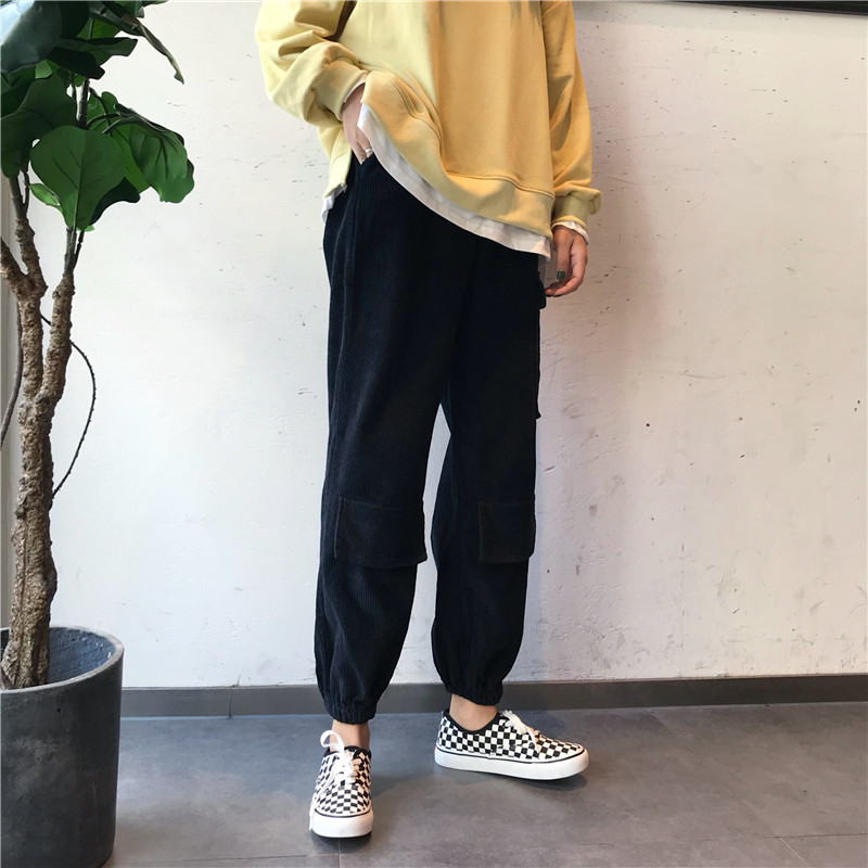/ 秋季女裝韓版復古工裝束腳褲子寬松高腰哈倫褲燈籠褲九分褲休閑褲