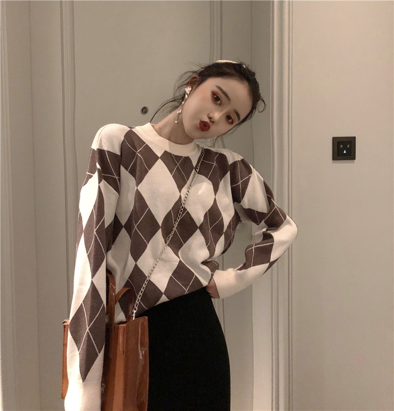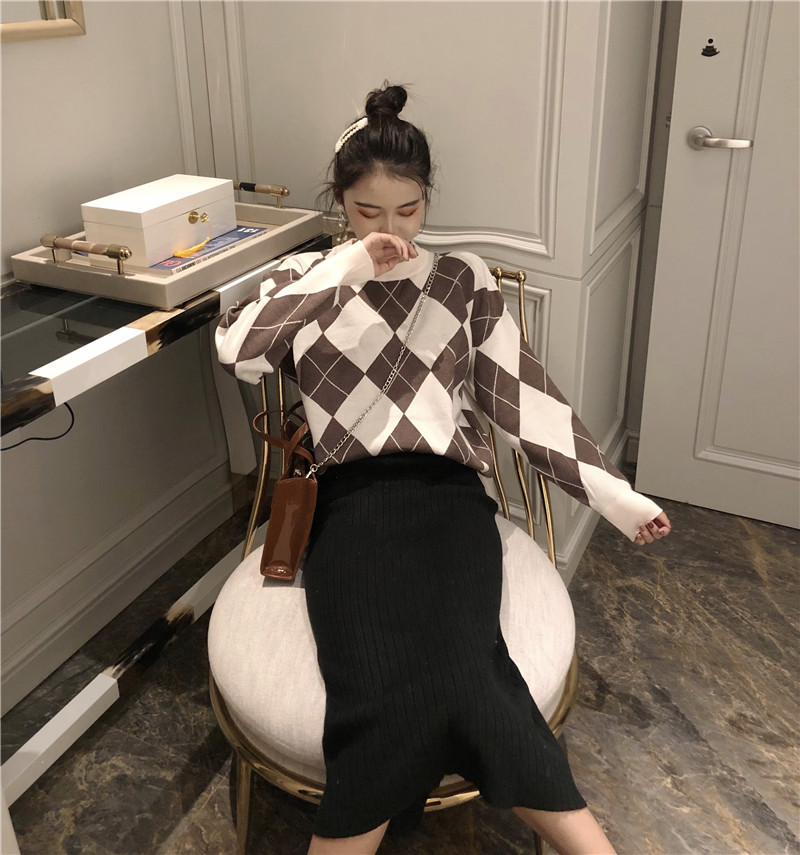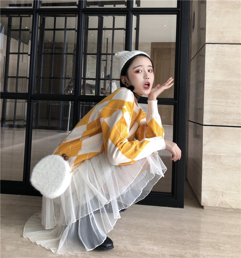 復古港味菱格針織上衣+百搭吊帶打底紗裙