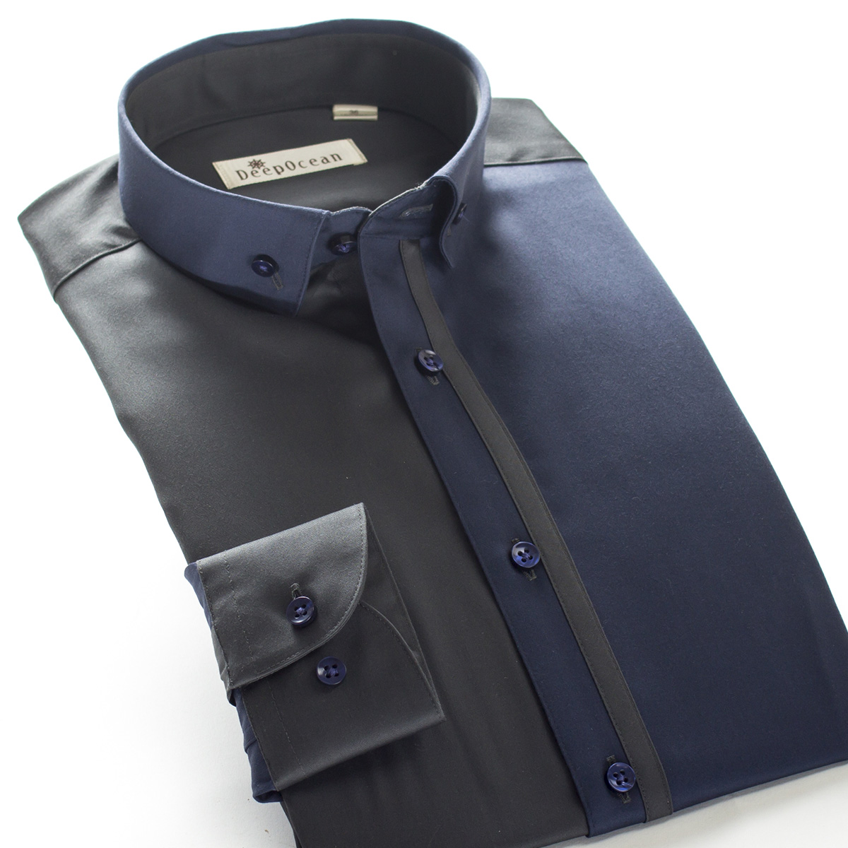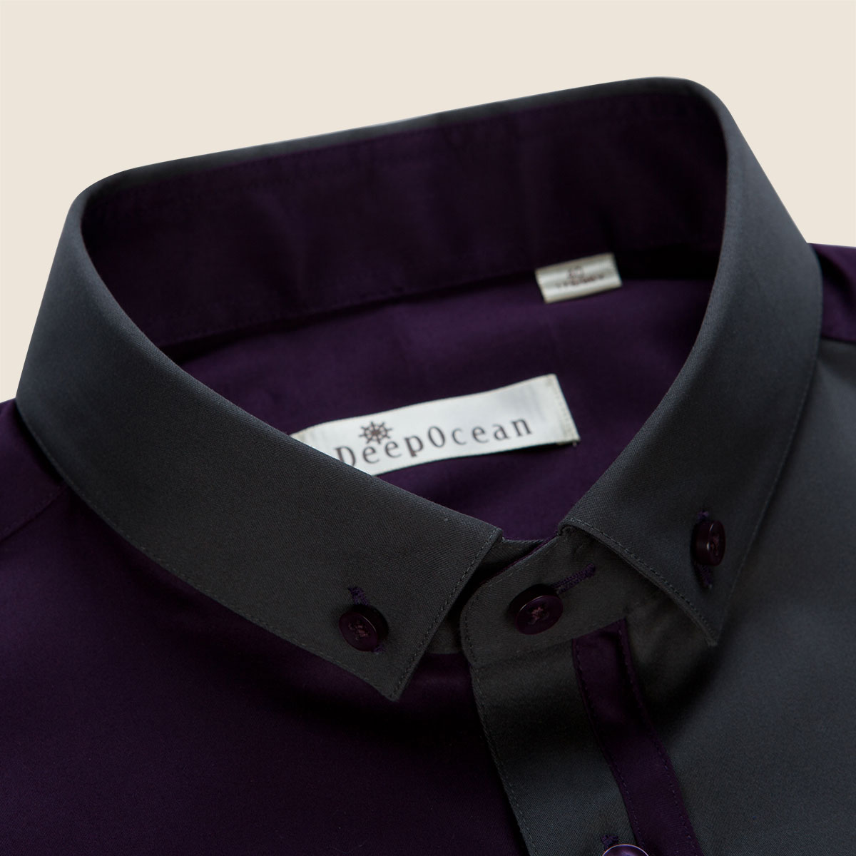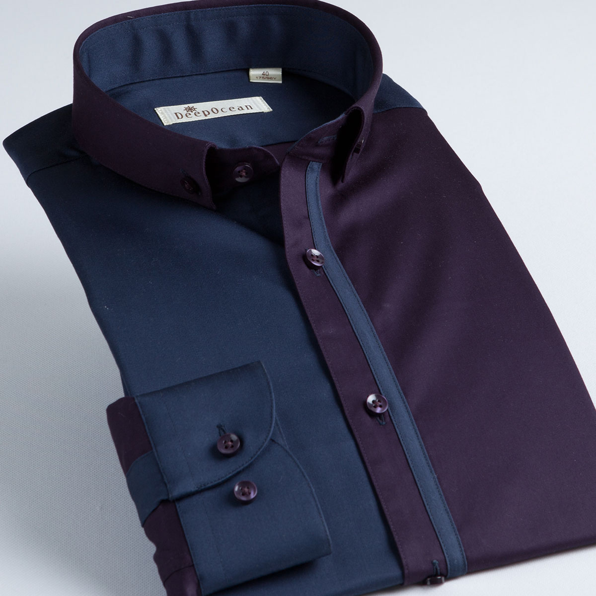 / 紫色拼接襯衫男長袖男士韓版修身絲光棉夜店潮男襯衣發型師秋裝男