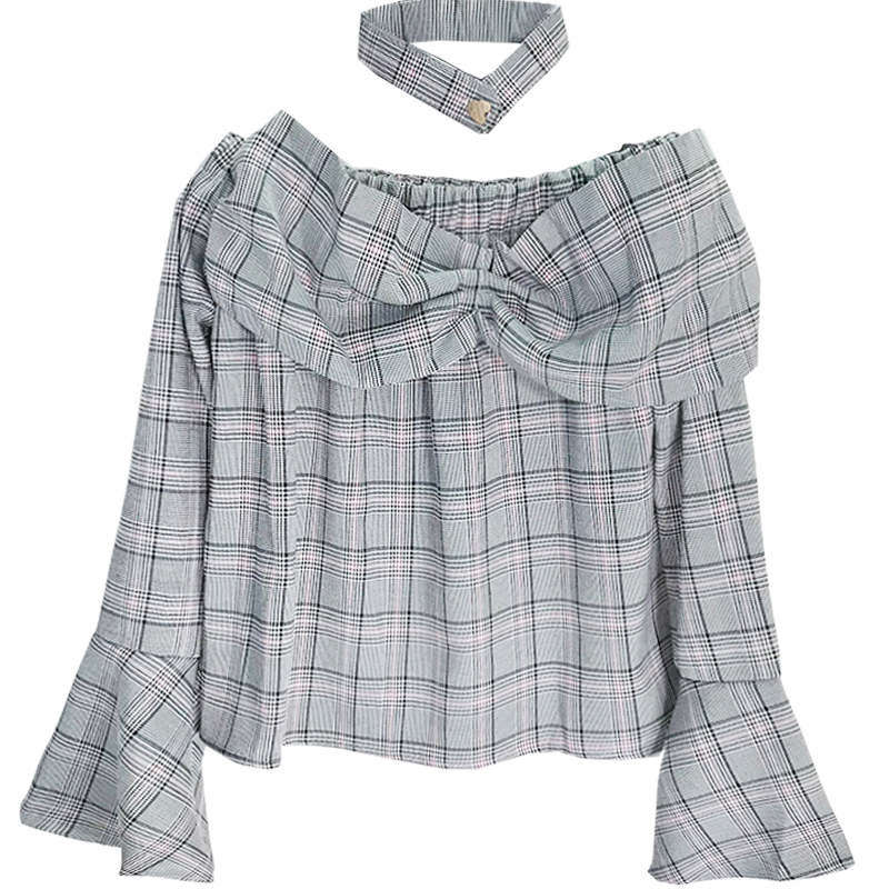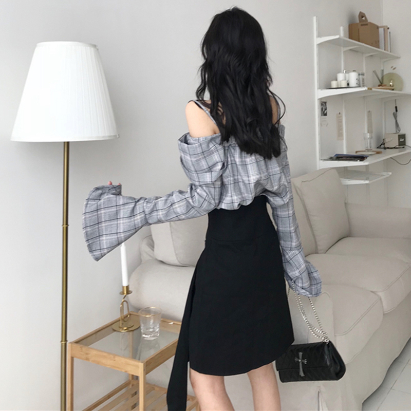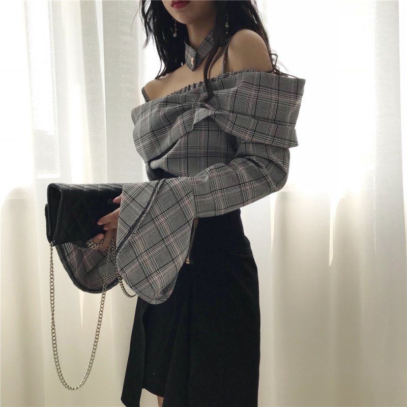 春秋裝女2018新款漏鎖骨一字露肩秋天上衣 港味復古氣質冷系女裝