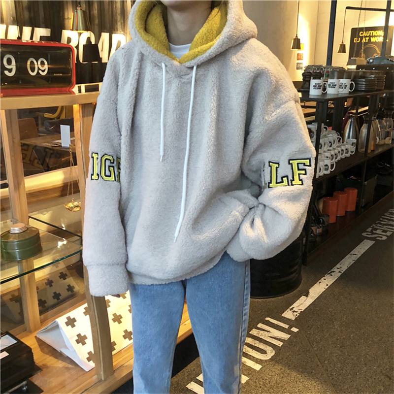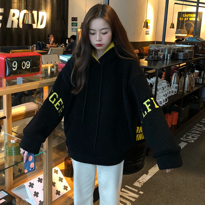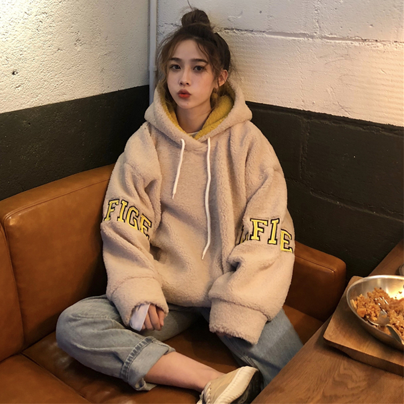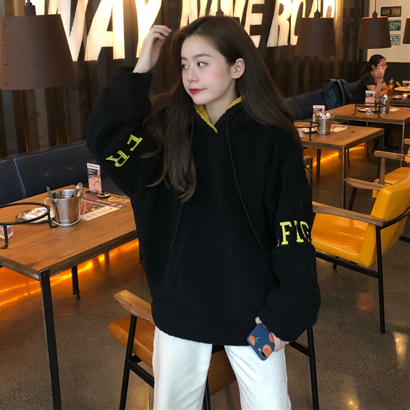 pp home港風衛衣女秋冬裝2018新款慵懶風寬松字母套頭連帽外套潮