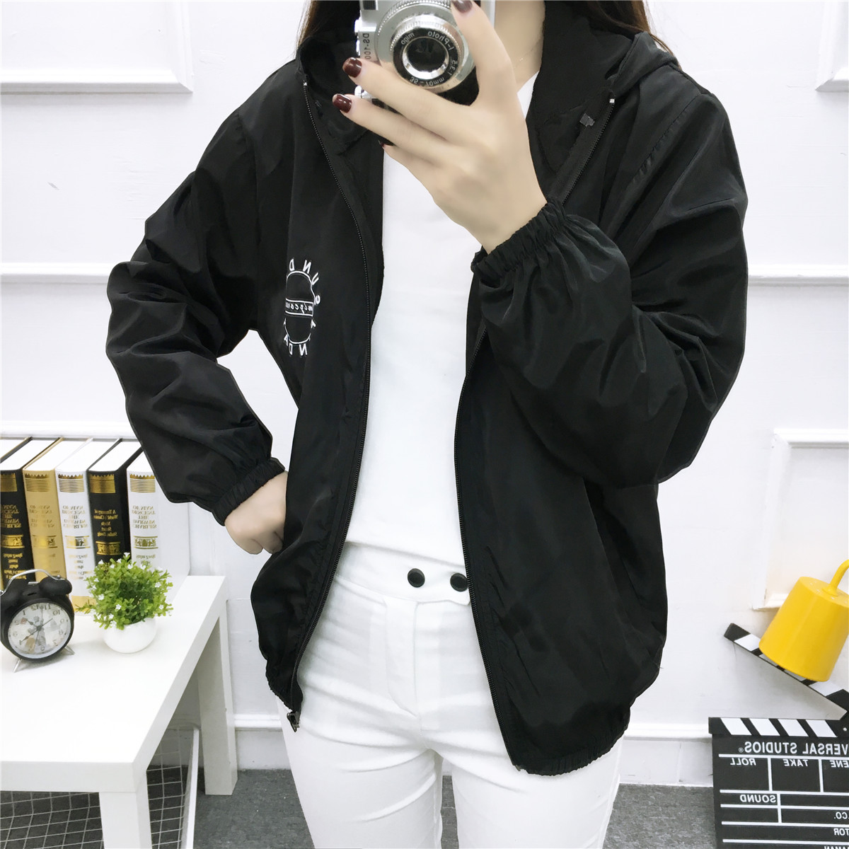 2017夏季新款印花寬松連帽防曬衣服女學生運動短外套薄夏天防曬衫
