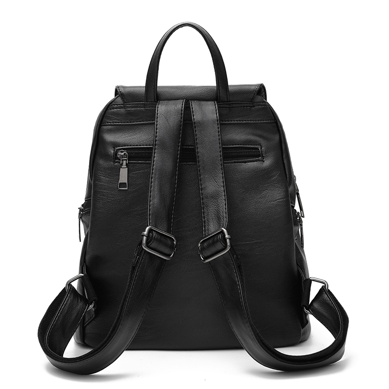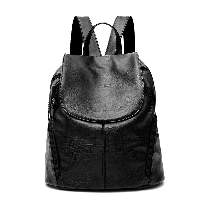雙肩包女新款韓版潮軟皮質時尚百搭女背包大容量簡約學生書包