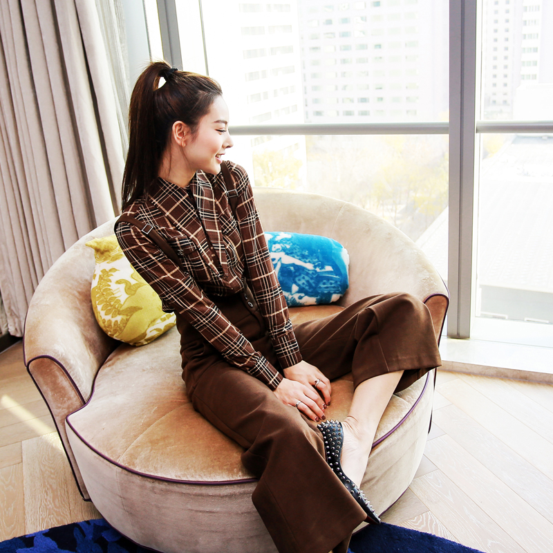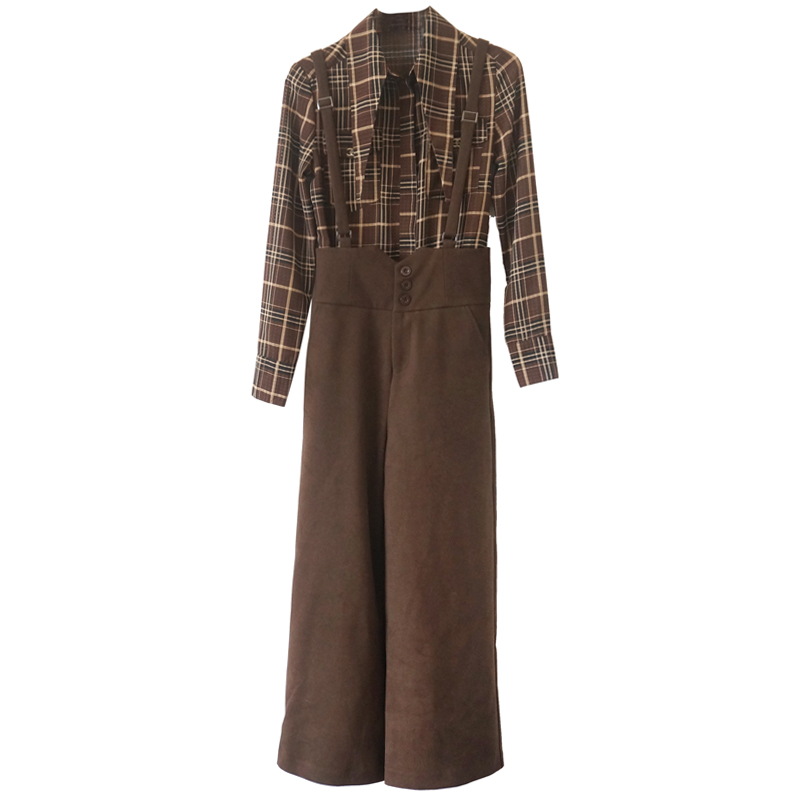 名媛氣質套裝女春秋裝時尚潮2018新款格子上衣吊帶闊腿褲兩件套