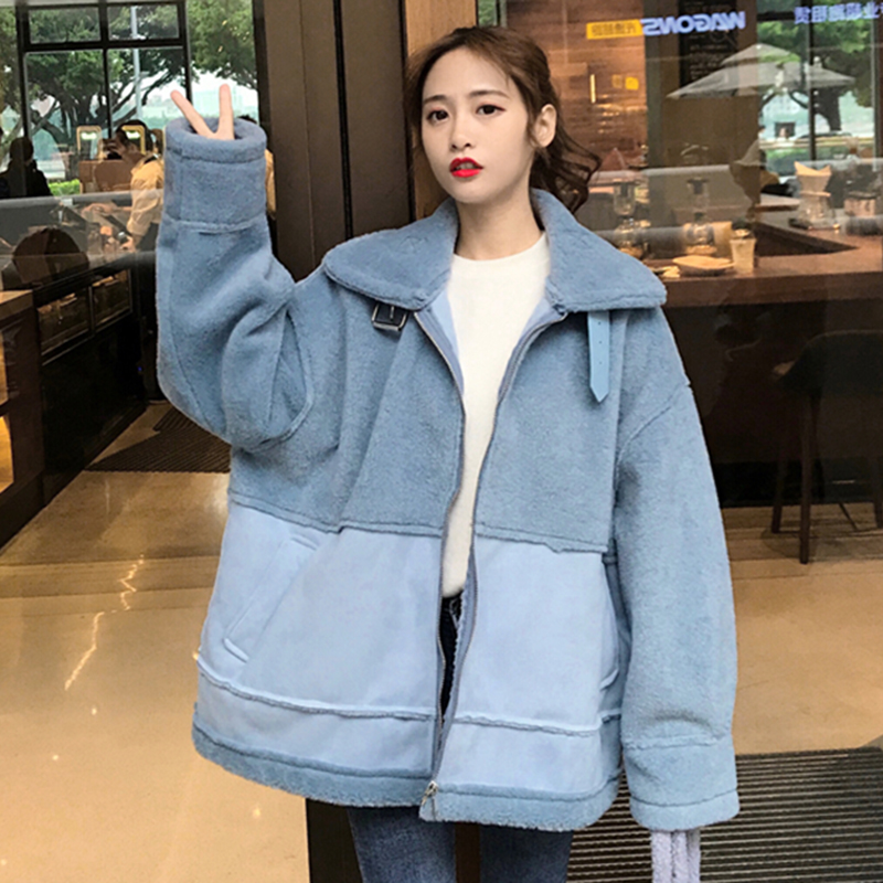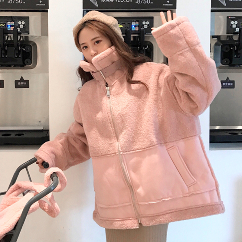 / 冬季新款女裝寬松保暖棉衣外套仿羊羔毛皮毛一體復古加厚棉服上衣