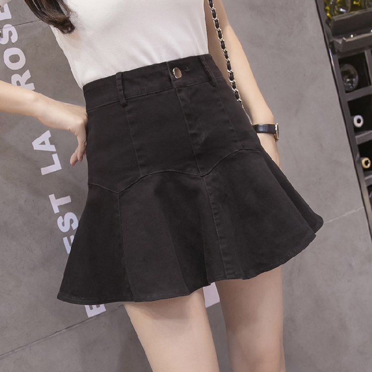 / 韓版高腰牛仔裙半身裙女荷葉邊魚尾裙A字短裙包臀褲裙防走光裙夏