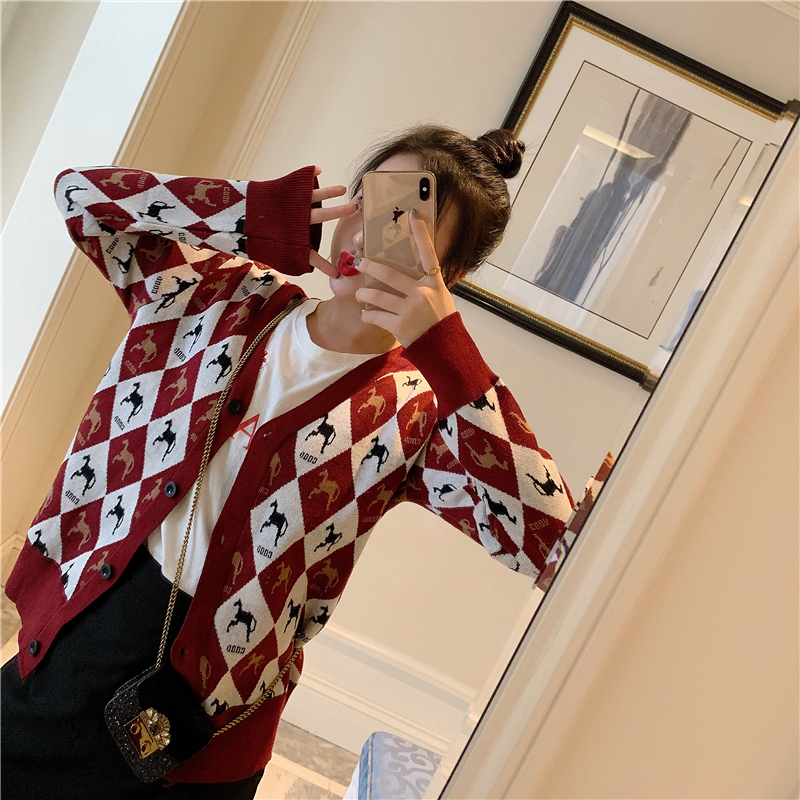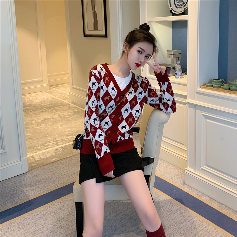 / 初秋溫柔風毛衣格子毛針織衫女秋裝上衣學院風chic網紅毛衣外套潮