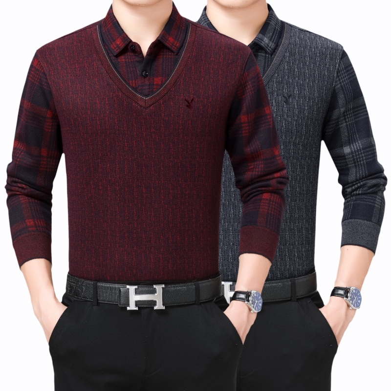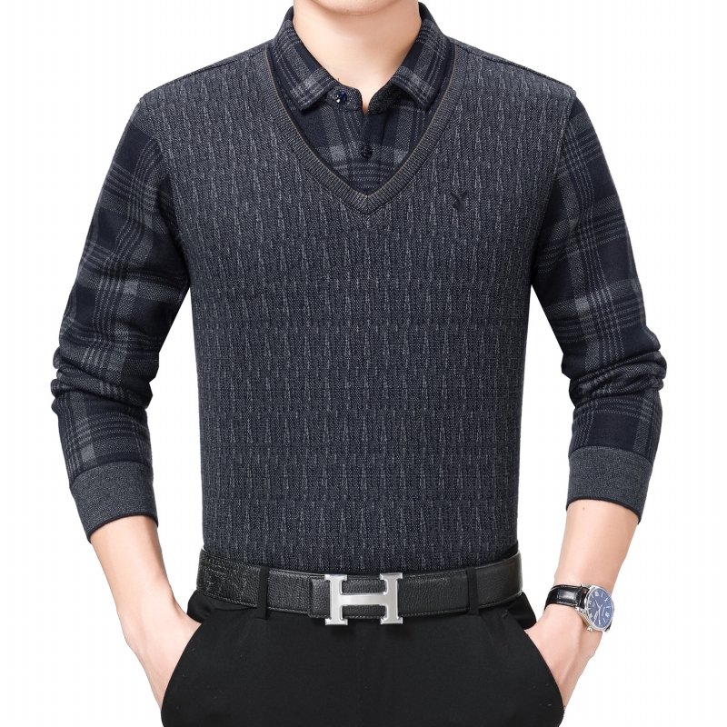 / 花花公子正品中年男士長袖保暖襯衫商務男裝加絨加厚假兩件襯衣冬