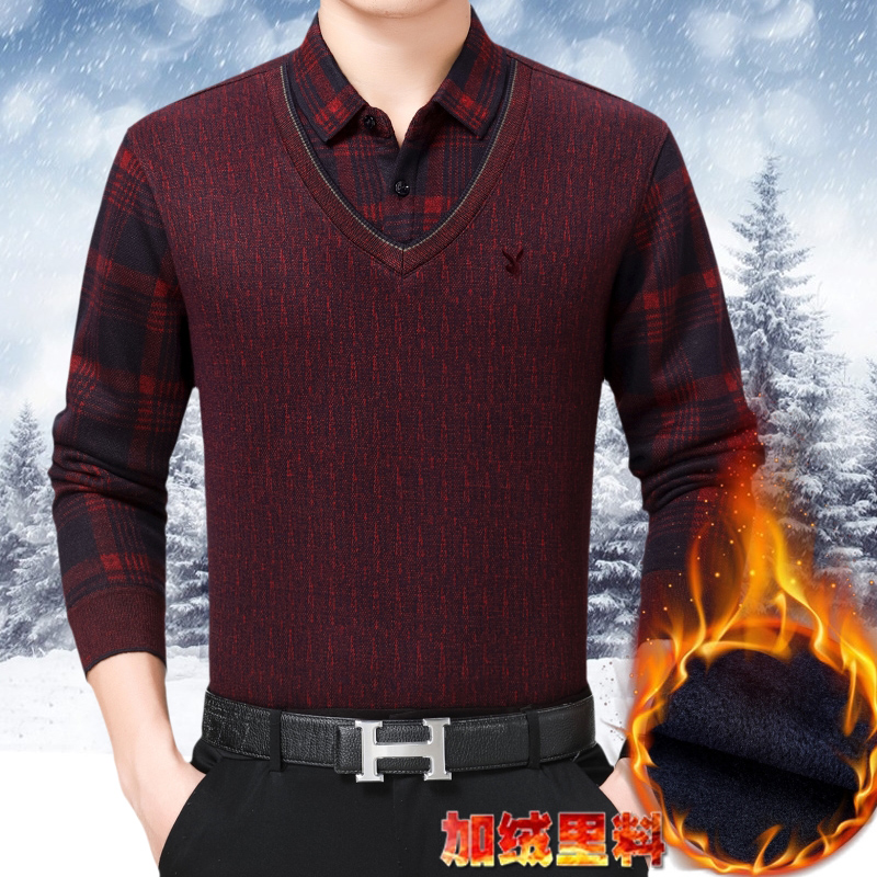 花花公子正品中年男士長袖保暖襯衫商務男裝加絨加厚假兩件襯衣冬