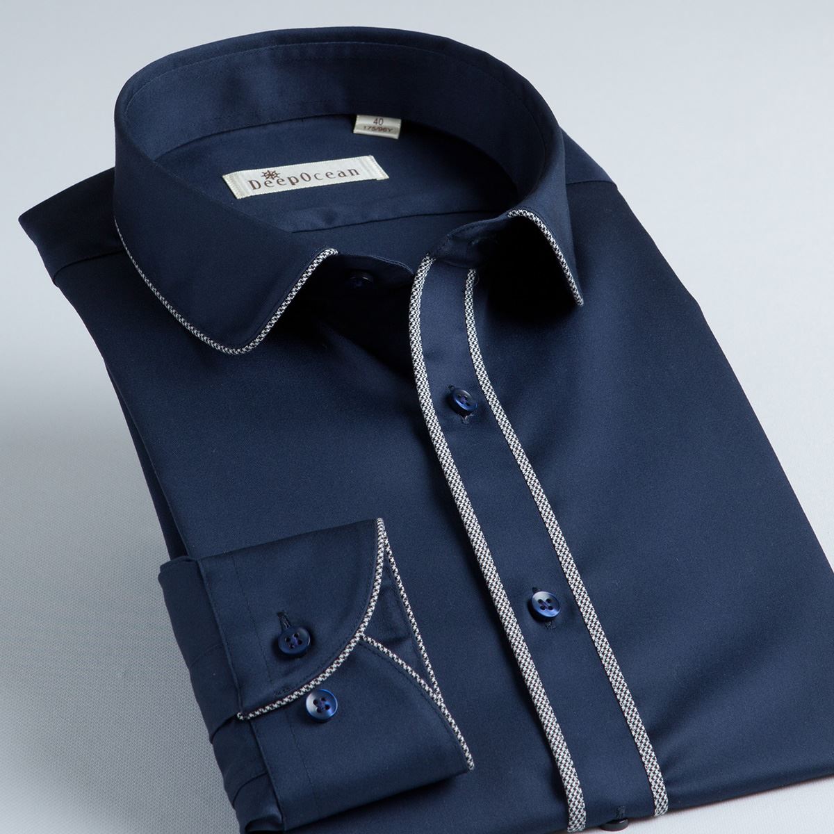 深海紫色襯衫男長袖純色英倫風酒紅色修身型拼接款純棉絲光棉襯衣