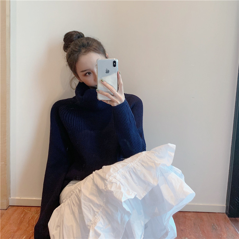 復古慵懶風套頭毛衣女2018新款冬百搭糖果色包心兔毛堆堆領~10色