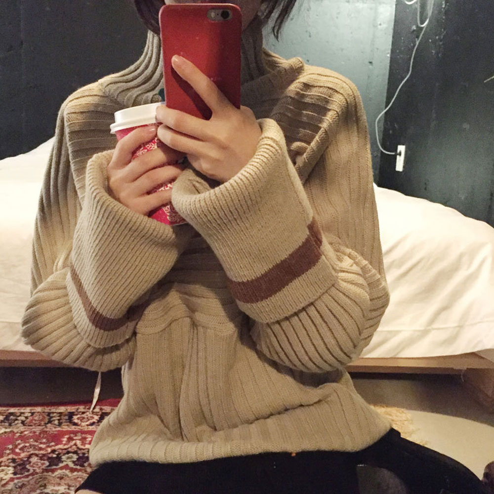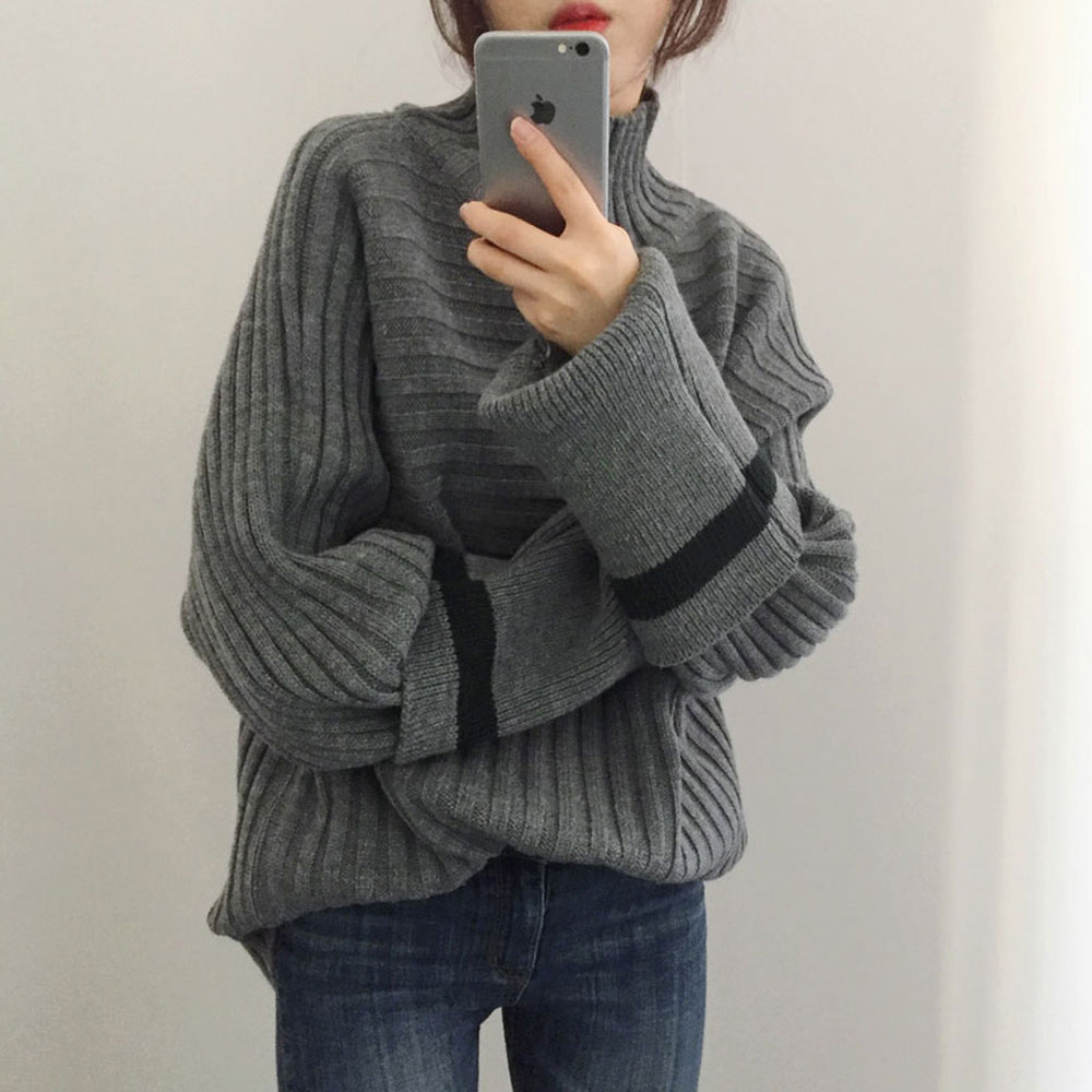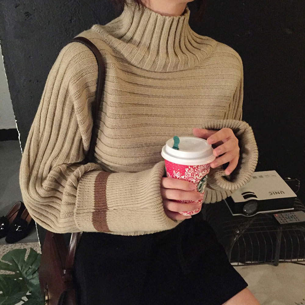 chic韓版慵懶風套頭毛衣女2018新款秋冬百搭保暖高領針織衫上衣女