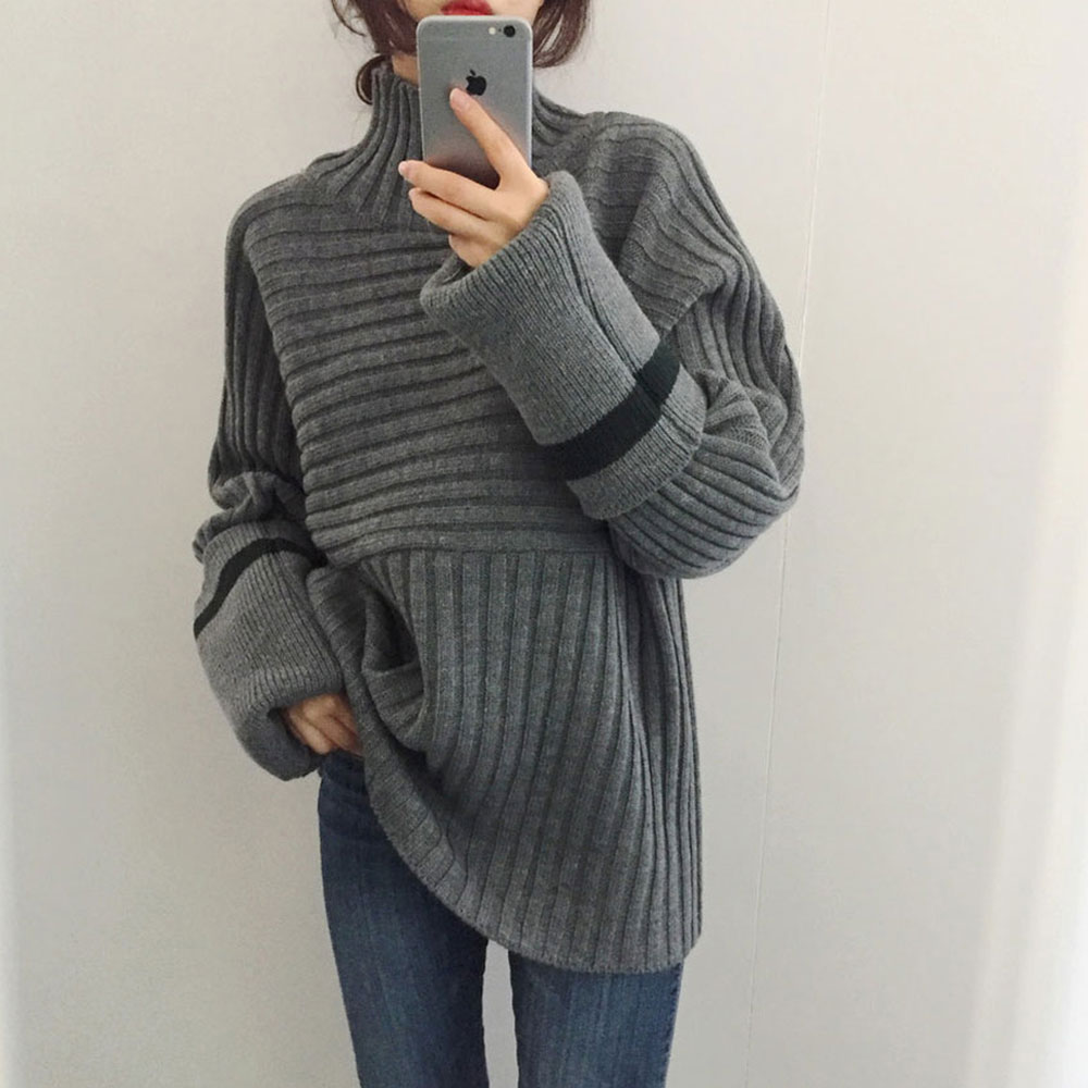 韓版百搭慵懶風毛衣女2018新款寬松oversize條紋中長款毛線上衣潮