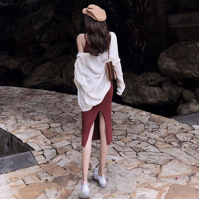 紅色毛衣|白色毛衣|黑色吊帶裙|酒紅吊帶裙