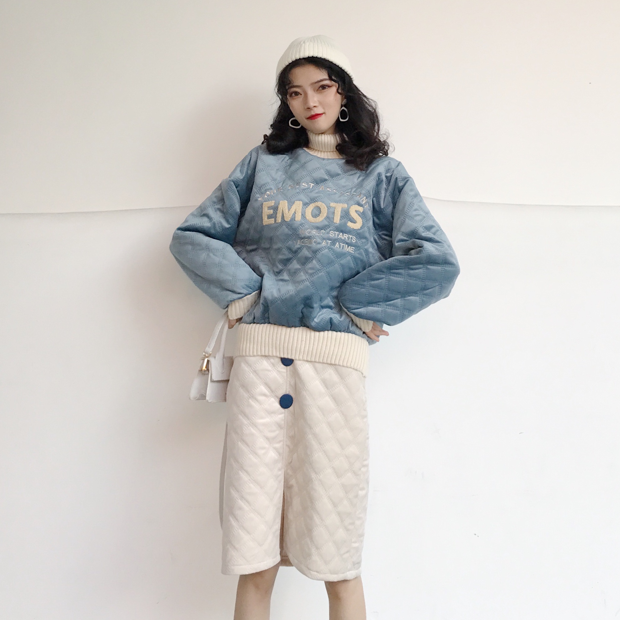 2018秋冬季韓版百搭新款兩件套時尚夾棉加厚衛衣包臀半身裙套裝女