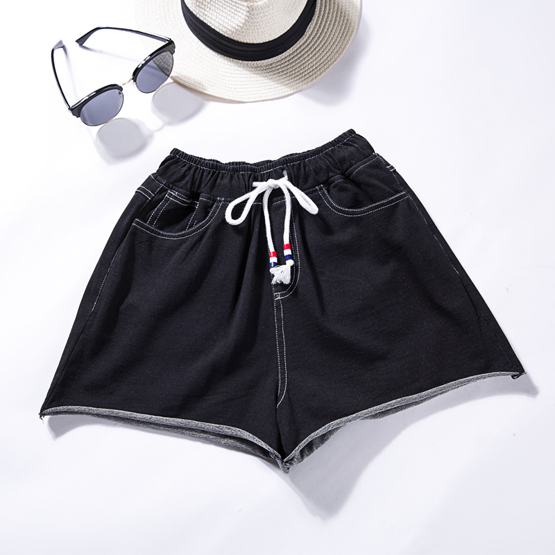 韓版松緊腰闊腿牛仔短褲女夏高腰寬松顯瘦休閑學生卷邊熱褲潮