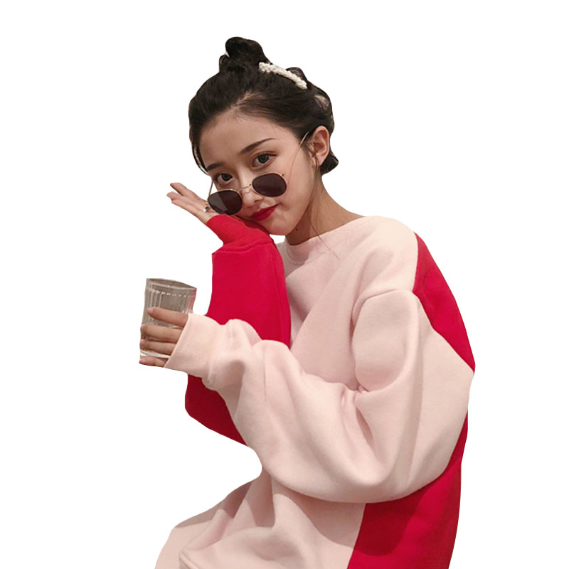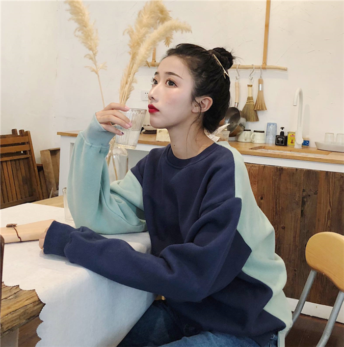 一個衛衣兩個顏色 紅拼米粉色 藍拼淺豆綠 都是非常顯白的顏色