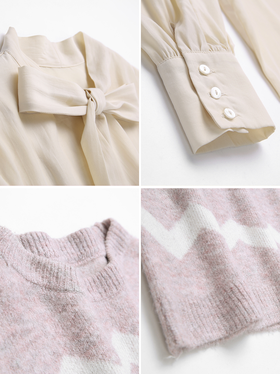 MG小象慵懶風套頭毛衣女冬季新款蝴蝶結打底襯衫寬松長袖圓領上衣
