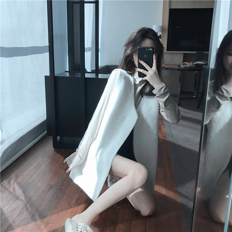 馬海毛網紅毛衣女2018新款針織開衫外套冷淡風針織吊帶連衣裙套裝