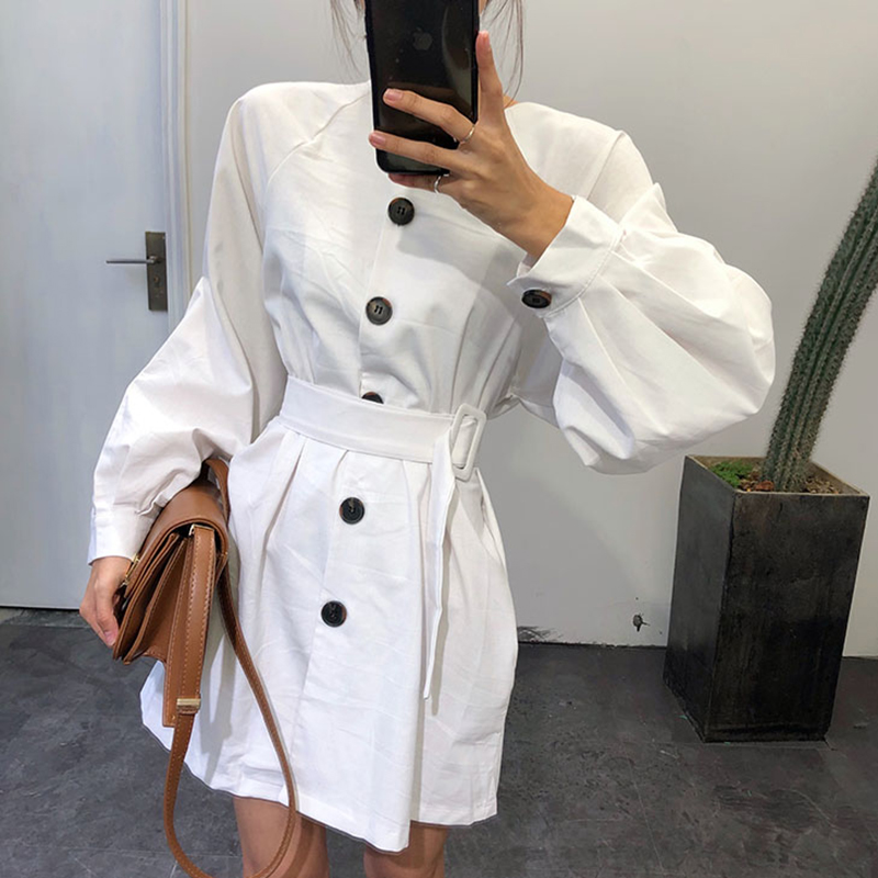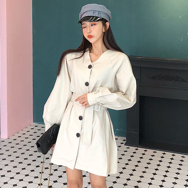 收腰顯瘦寬松長袖風衣女秋冬裝新款中長款白色開衫學生時尚外套潮