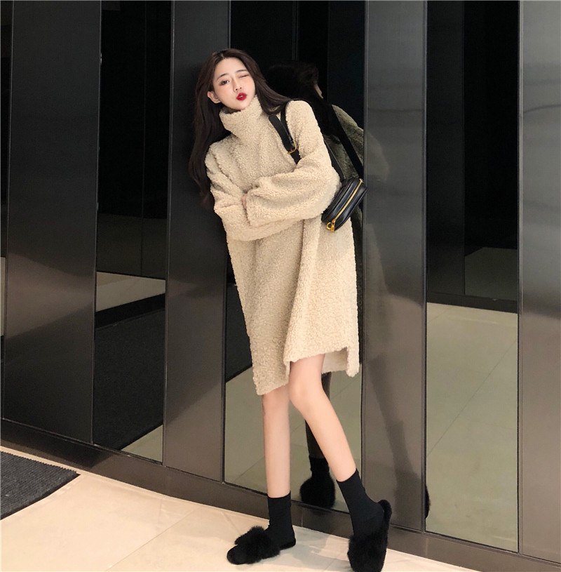 新款韓版chic時尚百搭氣質秋冬女加厚保暖寬松套頭中長款衛衣外套