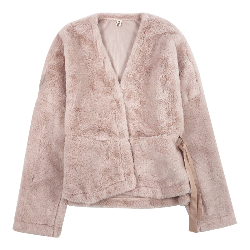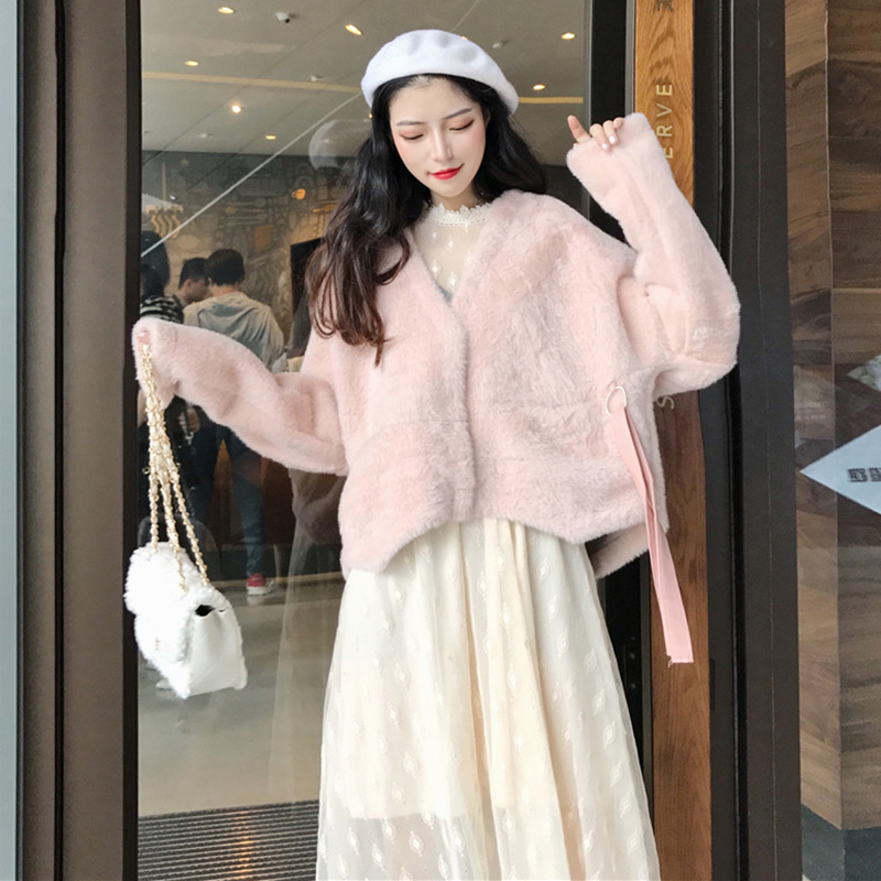 不規則短款毛絨外套女秋冬裝2018新款韓版寬松休閑V領長袖開衫潮