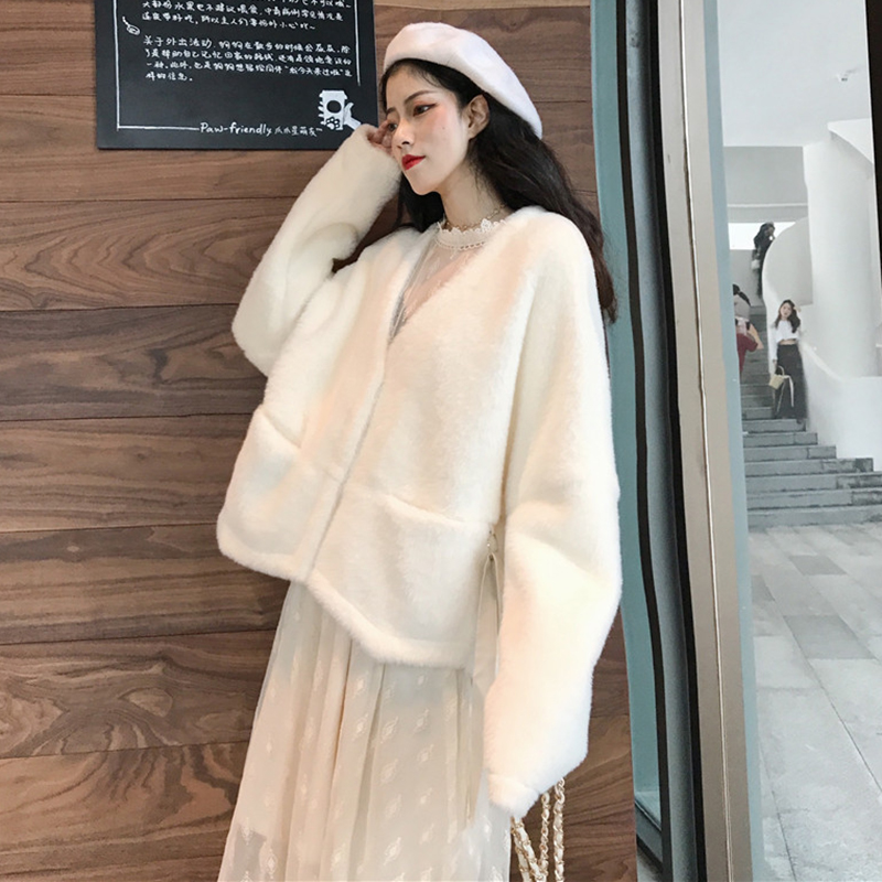 / 不規則短款毛絨外套女秋冬裝2018新款韓版寬松休閑V領長袖開衫潮